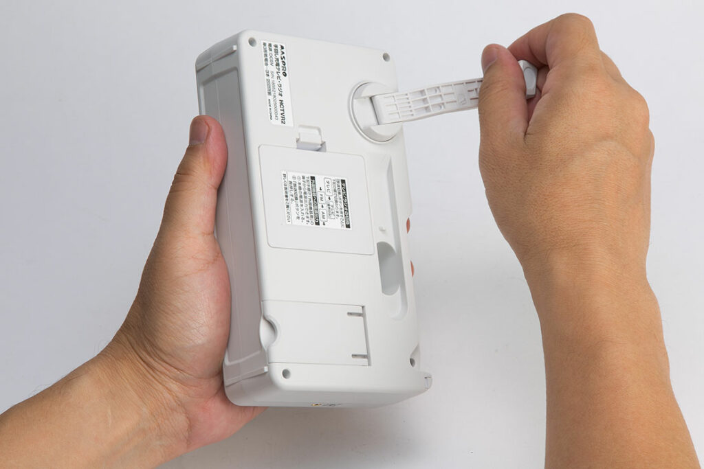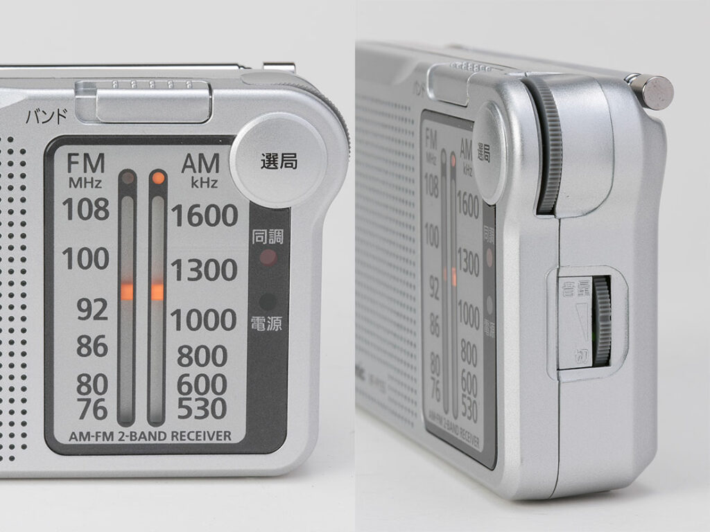 昔ながらのボリュームを上げるとカチッと電源が入るタイプ。長時間聴けて、阪神・淡路大震災のときにもこのタイプで情報を得たという人がたくさんいました。