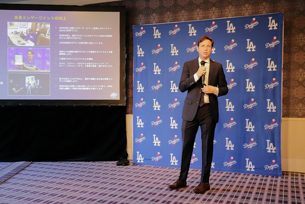 2026年1月27日に行われた発表会には、ドジャースのビジネス戦略担当、マイケル・スペトナー氏が来日した。壇上で語られたのは、日本のファンに対する率直な敬意だ。「情熱のレベルが違う」「選手や野球に誇りを持っている」「世界屈指の素晴らしいファン」。ひとつひとつの言葉に、球団が日本市場をどう見ているのかがわかる言葉だ。ファンクラブ拡大の原動力となっているのは、まぎれもなく日本のファンが生み出す圧倒的な熱量だ!
