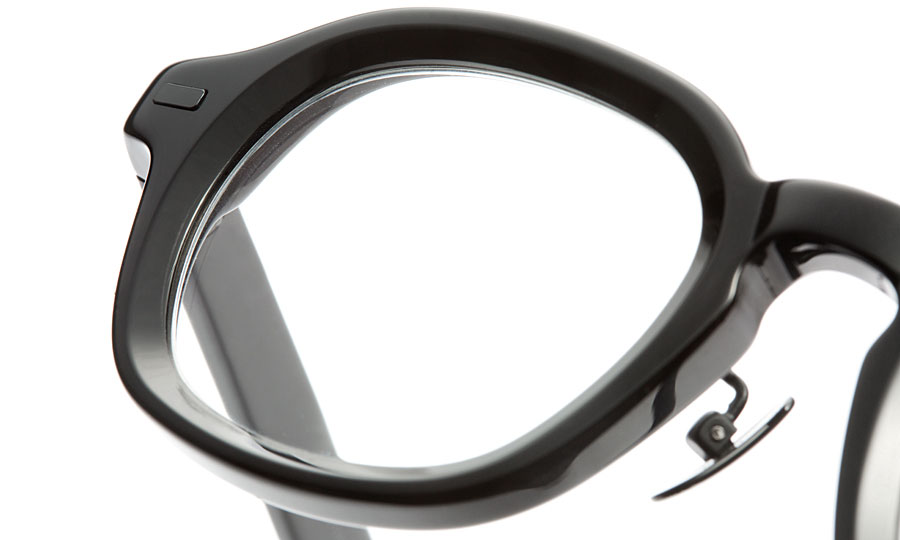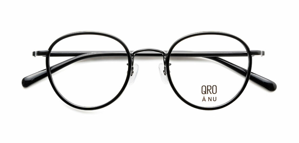 本気度が感じられるのはバリエーションだけじゃない。『QRO』の黒色は材料となるアセテートや塗料、メタルフレームの場合はメッキにこだわって、黒の中の黒、漆黒を表現している。1本のフレームの中にグロッシーな黒とマットな黒を組み合わせることで、黒を表情豊かにデザインしている点にもこだわりを感じる。さらに、ほとんどのフレームでネジ、鼻パッド、リベットなどのパーツも黒で統一しているのも見逃せないポイントだ。