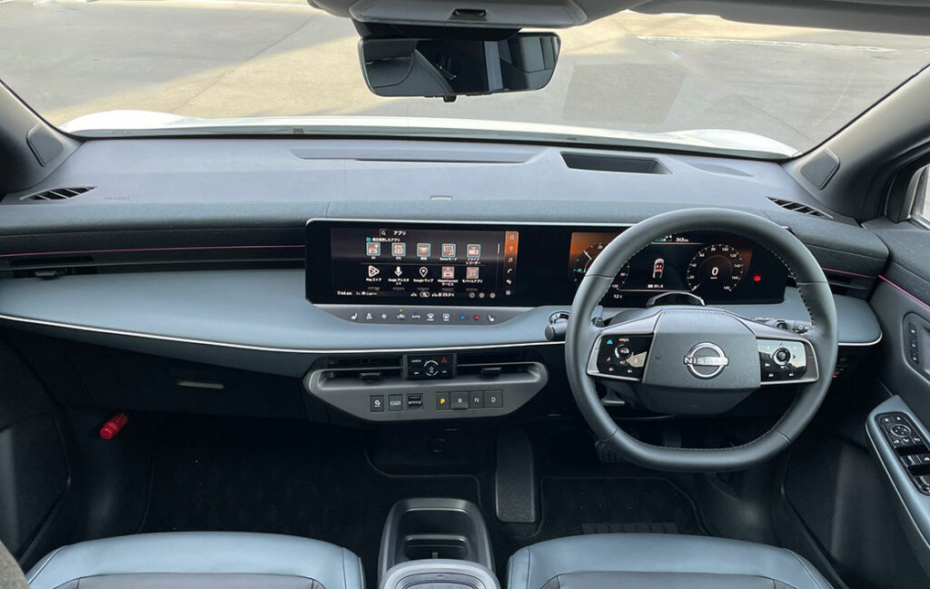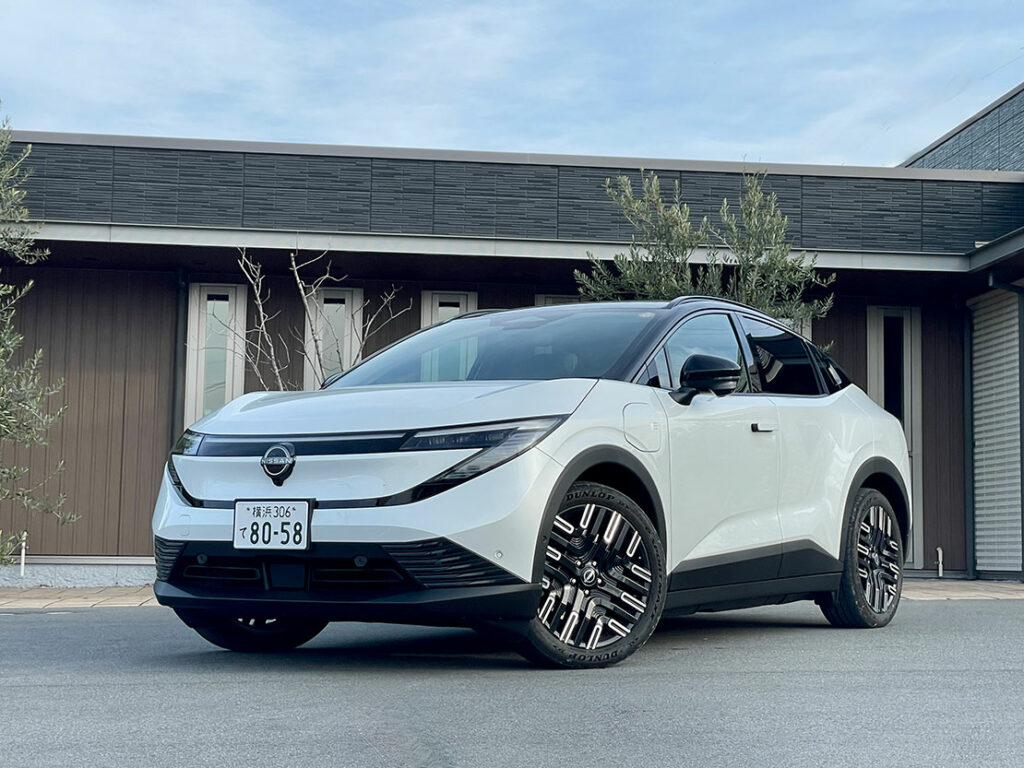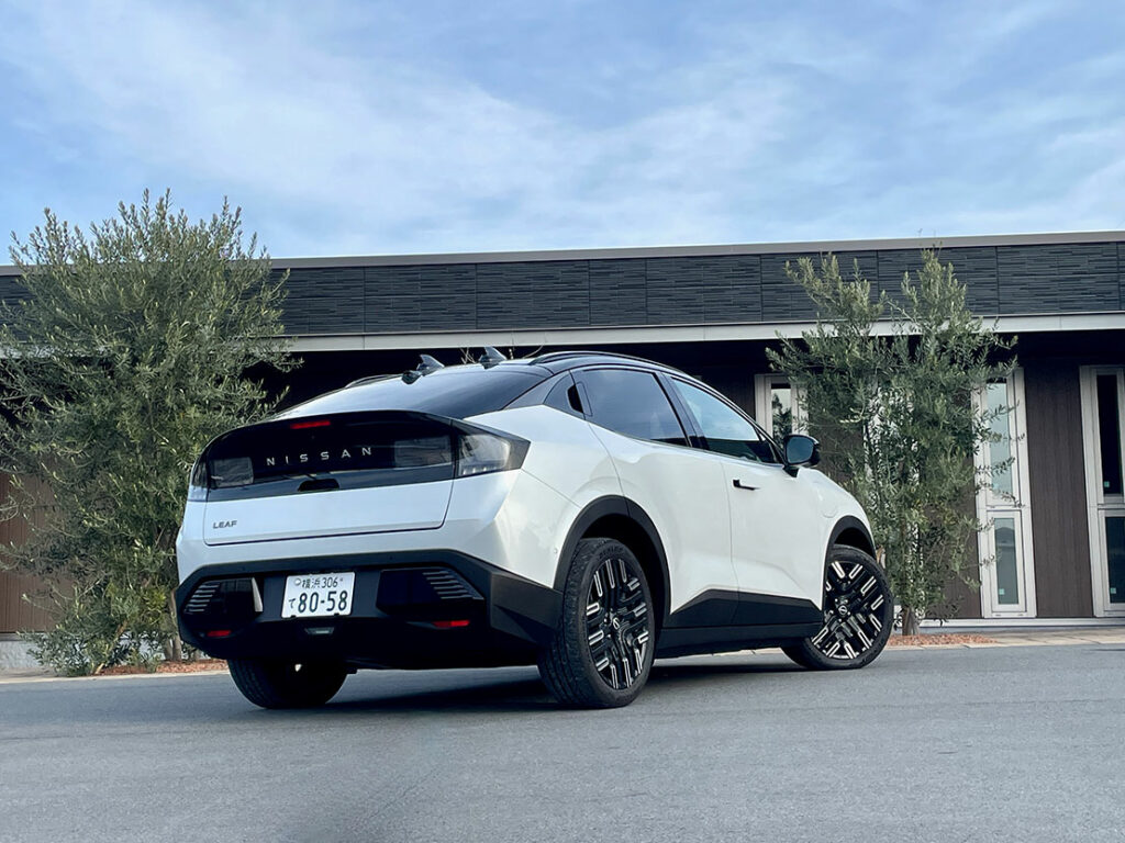 ボディサイズは先代と比較して全長は短くなり、全幅は広がっている。全高はほぼ変化なしか若干高くなっているのだが、初見だとだいぶ大きく見える。それもクロスオーバースタイルのなせる妙技なのかもしれない。ボディの話で付け加えると、現行型は日産EVのフラッグシップ、アリアのプラットフォームを使っている。