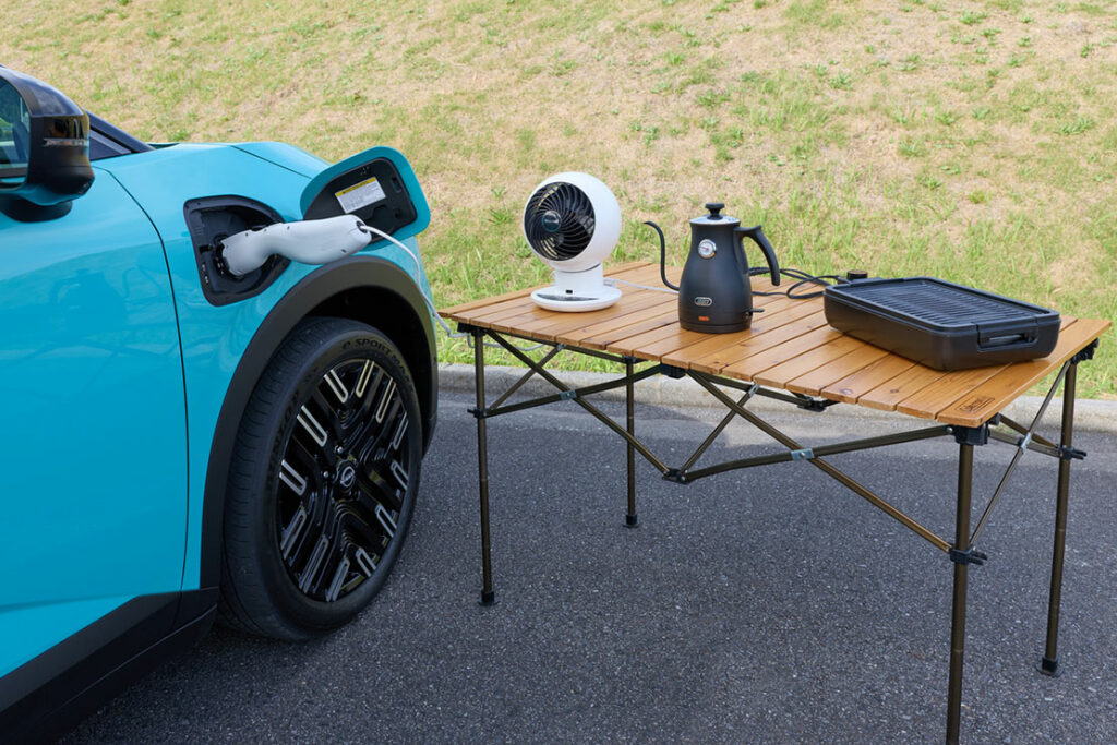 またアウトドア趣味など屋外での電源(V2L)としても。もともと車内に100Vコンセントがあるのだが、アクセサリアダプタを充電ポートに差し込めば、クルマがより多くの家電が使える移動式モバイルバッテリー計画も達成できてしまう。