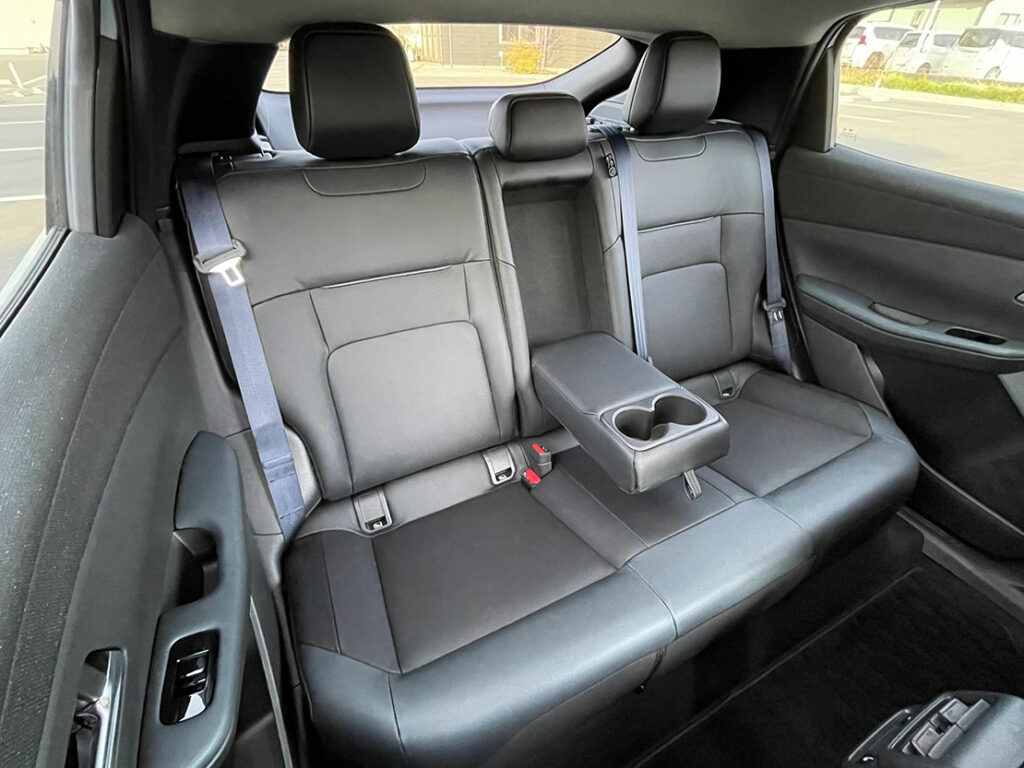 ボディサイズこそアリアに比べるとコンパクトだが、室内は十分広い。加えて試乗車はオプション設定の後席用シートヒーターが装備されていて豪華快適。コレはアリアじゃなくても十分カモ、と思ってしまうほど。