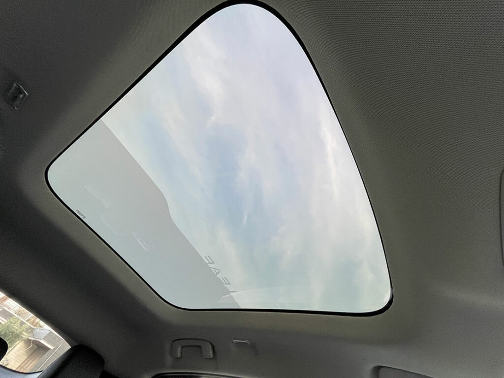 後席はセンタートンネルがなくなりフラットに。これが見た目にも広い。筆者が自分の運転ポジションを確保し、後席に座っても窮屈とは感じなかった。頭上スペースは大人の拳1個半くらいの余裕があるのだが、オプションされていた赤外線反射コーティングが施されている調光パノラミックガラスルーフが頭上の開放感を演出する。この電子調光技術でガラスの透明度を変える調光パノラミックガラスルーフは日産としては初採用のアイテムで2段階の調整が可能。
