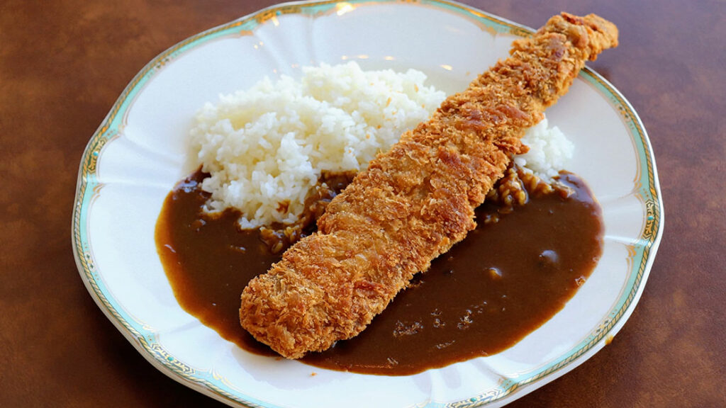 ラージヒルカレー 3000円:スキー場をイメージしたボリューム満点のカツカレー。
