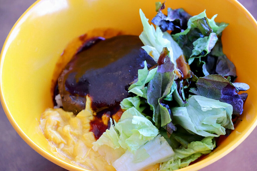 “ビーフ100%ハンバーグ” のロコモコ丼 2000円:肉をしっかり味わいたい人におすすめ。