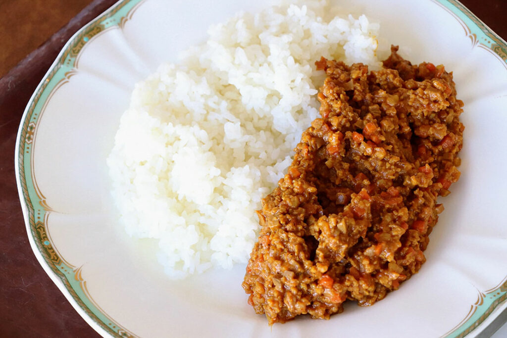 大豆ミートのキーマカレー 2000円:インバウンドにも嬉しい、大豆ミートを使ったヘルシーなカレー。