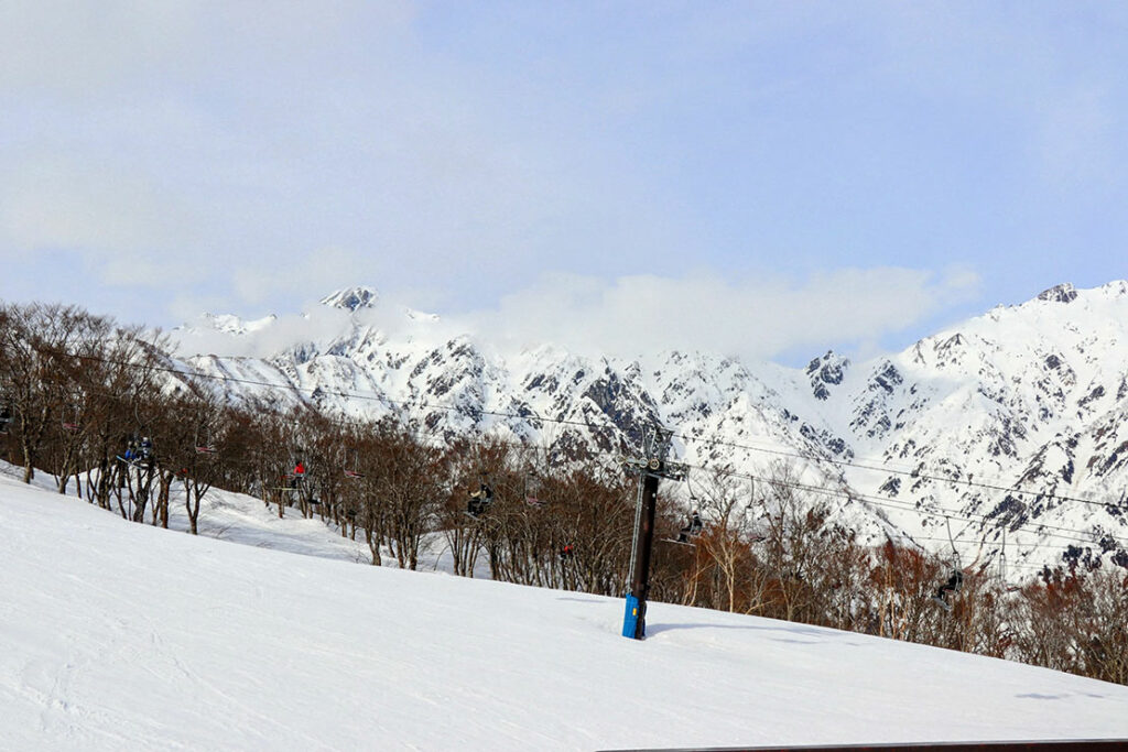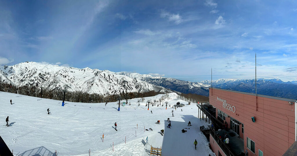 一気に駆け上がった先の山頂では、“白馬三山を正面から一望できる唯一のスキー場” と言われる圧巻のパノラマが広がる。ここでしか味わえないこの景色こそ、スキーヤーにとっての大きな醍醐味だ。