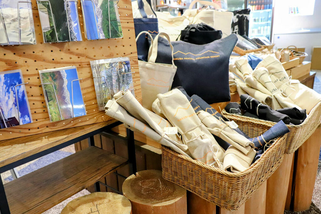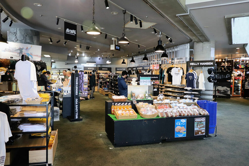 ショップでは、白馬限定グッズや岩岳オリジナルアイテムをはじめ、スキー・スノーボード用の小物、地元の食品やクラフト品などを幅広く取りそろえている。また、ゴンドラを含む各種チケットの販売や、スキー・スノーボードのレンタル受付、コース情報などのインフォメーションも提供しているぞ。