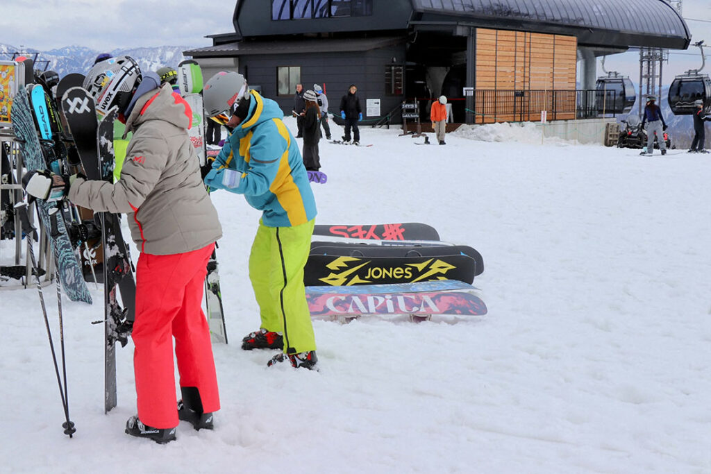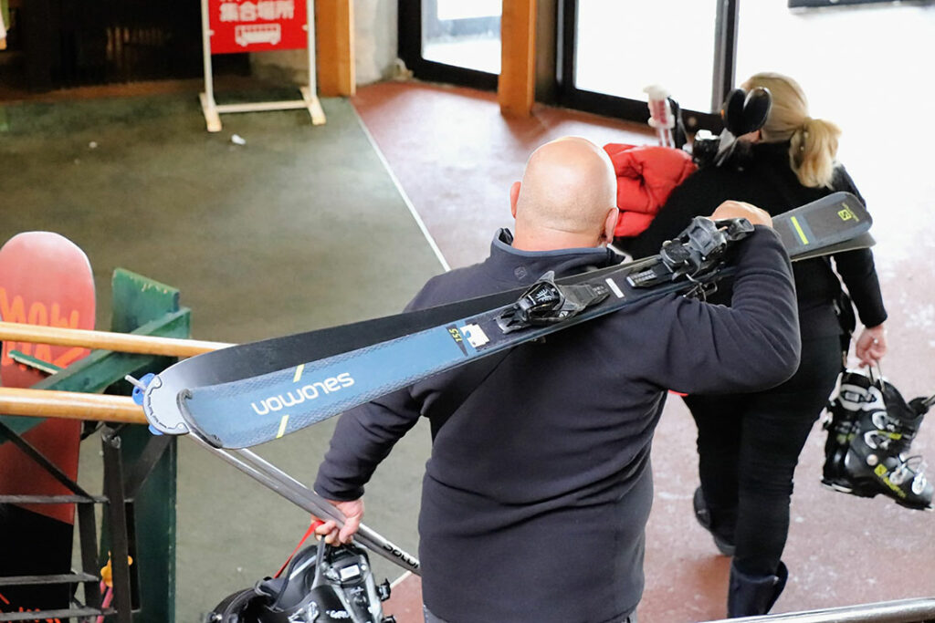 Hakuba Valleyの1泊2日取材も、北陸新幹線の時間が迫り、レンタルショップ「スパイシー」に用具一式を返却して帰京の準備へ。あっという間の白馬取材だった。