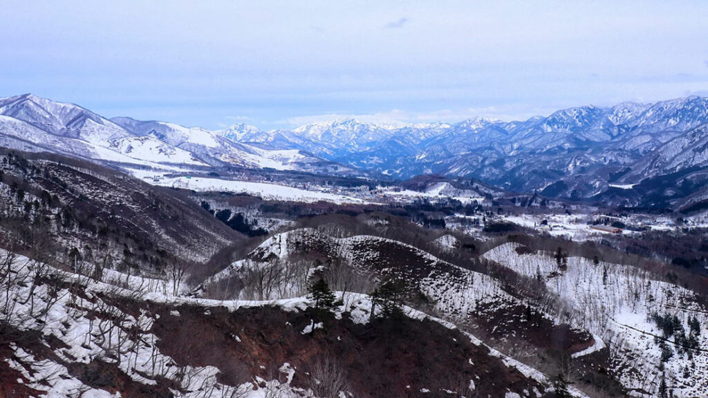 白馬の名は、白馬岳(しろうまだけ)に春先現れる雪形「代掻き馬(しろかきうま)」が由来とのこと。また、五竜岳の山肌に現れる雪形は「武田菱」と呼ばれ、武田信玄の家紋に似た形が浮かび上がるという。春スキーの時期には、こうした雪形を目にできるかもしれない。