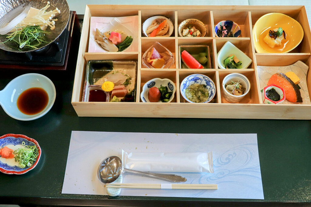 エイブル白馬五竜へ出発する前に、まずはおいしい朝食でエネルギーチャージ。白馬産あきたこまちが驚くほど美味しく、昨晩に続いて信州の味を朝からしっかり堪能できた。温泉、信州食材、ロケーション、そしておもてなしの四拍子がそろった「また来たい」と思わせる温泉宿・景水だ。