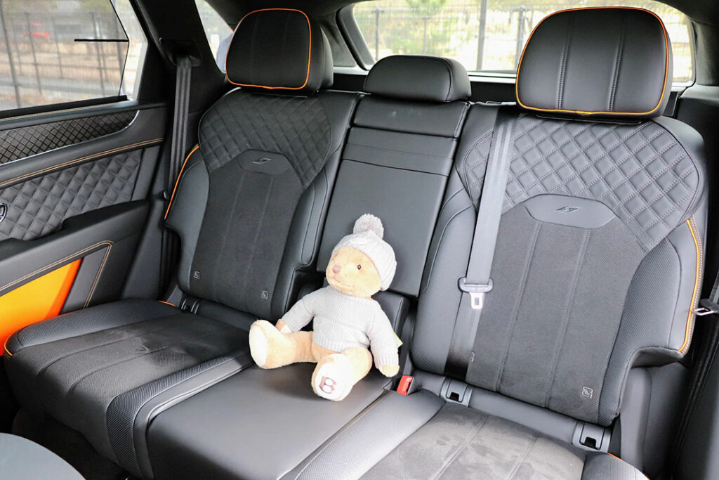 前席以上に後席は “静かなラウンジ”。ベントレーの真骨頂は後席にあると言っていい。エアサスが路面の荒れを完全に吸収することにより静粛性はクラス最高レベル。走行中でも会話が自然にできる静けさだ。シートの厚みと柔らかさが絶妙で、SUVでありながら、高級セダンの後席に近い快適性があるぞ。