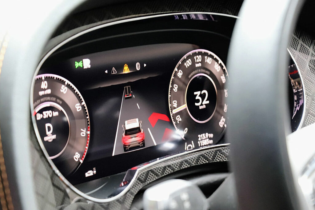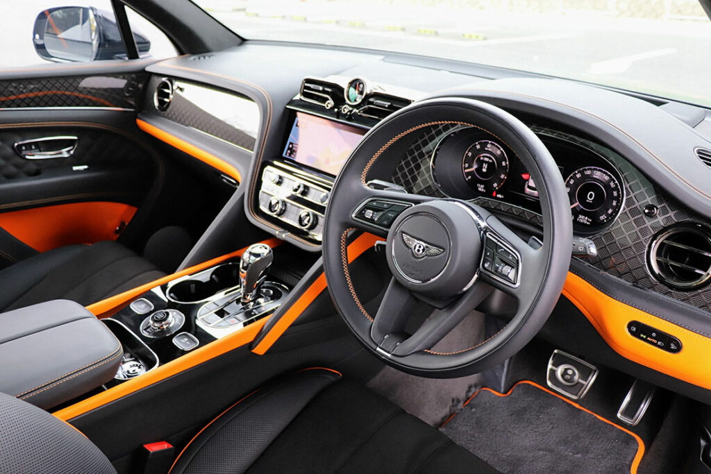 ダイヤモンドパターンのトリムにオレンジのアンビエントライト。精密に削り出されたメタルスイッチ群。そしてベントレー特有の重厚なレザーの香りすべてが「走る前から満足させる」ために存在している。
