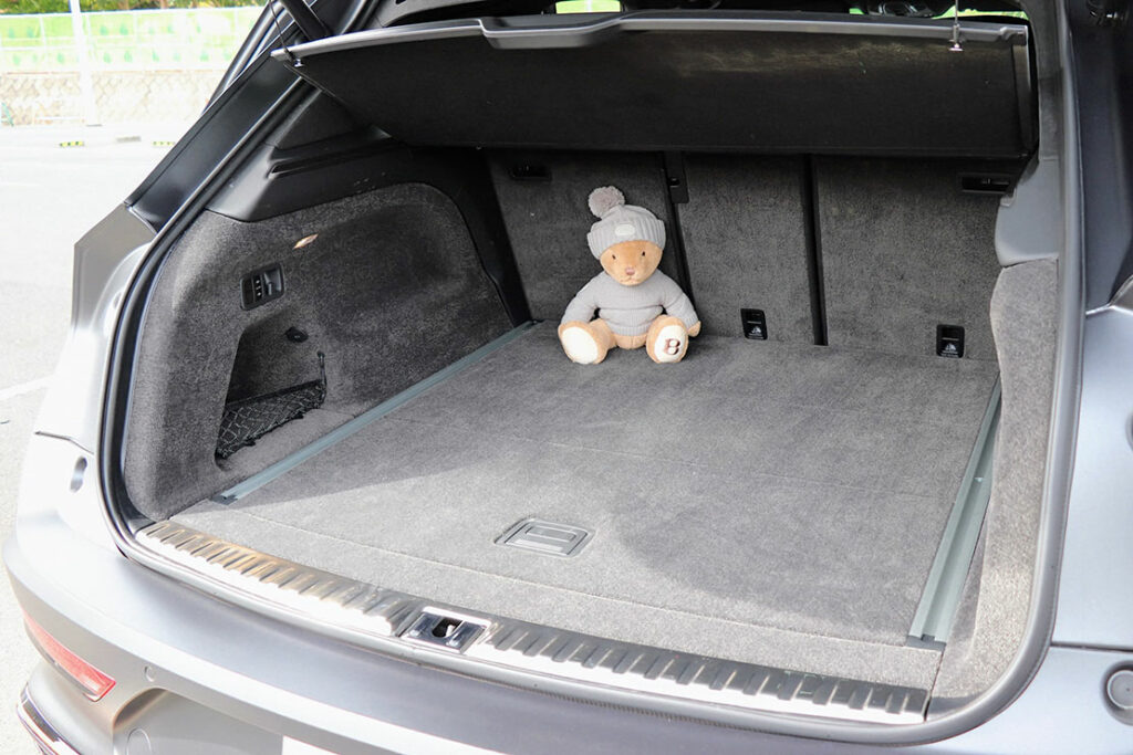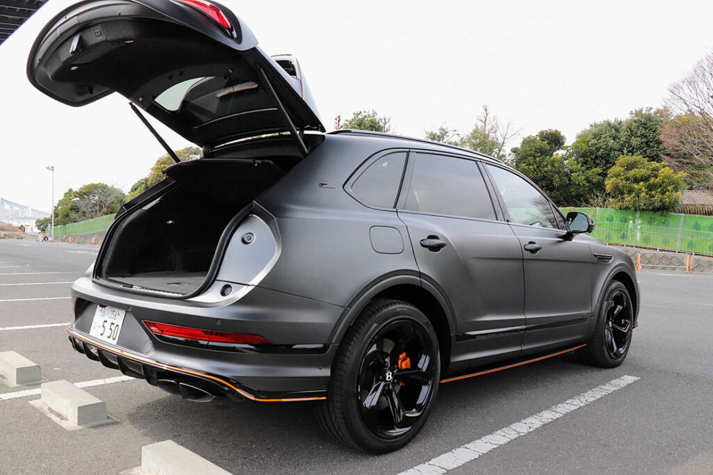 ベントレーはSUVでも “上品な使いやすさ” を重視している。開口部が大きく、床がフラット(バンパーの段差が少ない)、もちろん電動テールゲート標準装備だ。荷物の出し入れが非常にスムーズで、重い荷物でも扱いやすい。「荷物を置く場所」というより、高級ホテルのクローゼットの延長のような雰囲気だ。