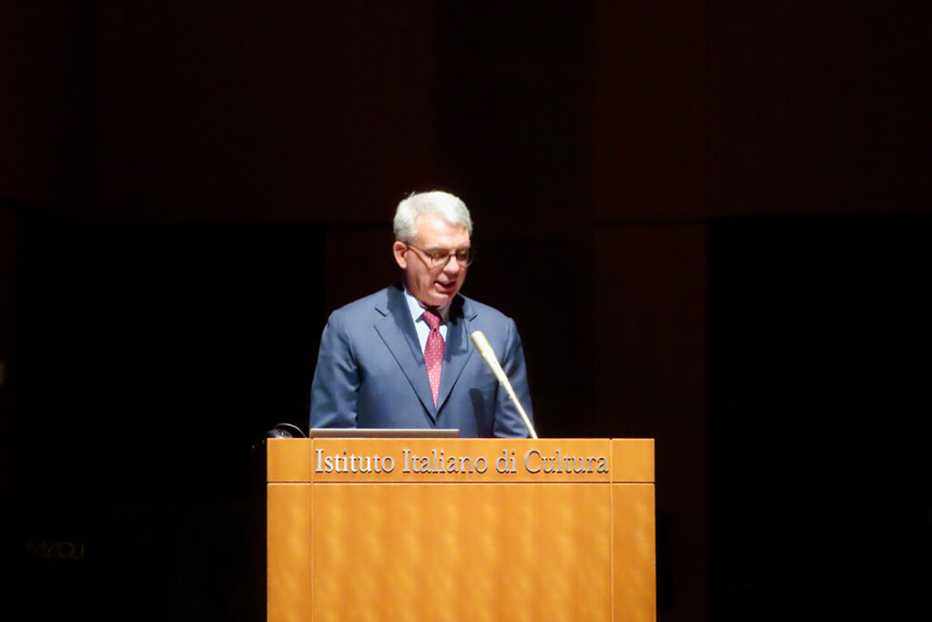 さらに、ジャンルイジ・ベネデッティ (Gianluigi BENEDETTI)前駐日イタリア大使も登壇し、開催を記念したスピーチを発表。