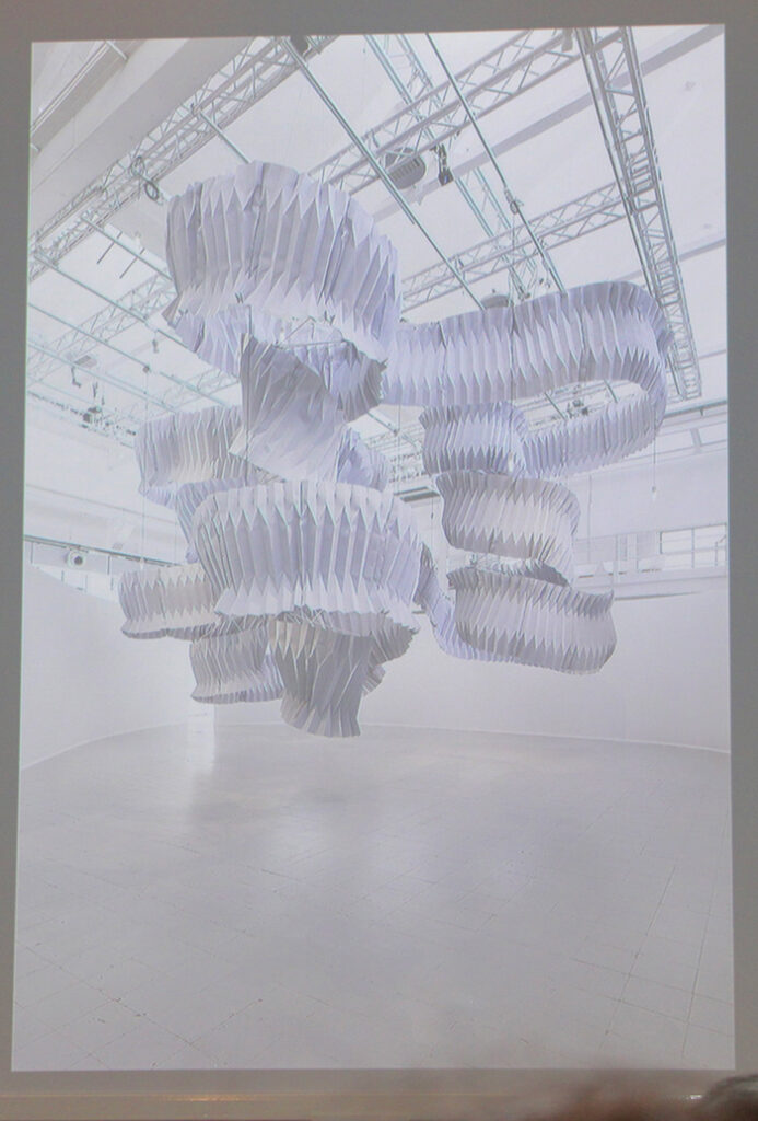 2018年にミラノで発表されたのが、大気汚染物質を吸着する機能を持つ布「Breath(ブレス)」を用いて作られた、やわらかく、サステイナブルなインスタレーション「ブリージング」。