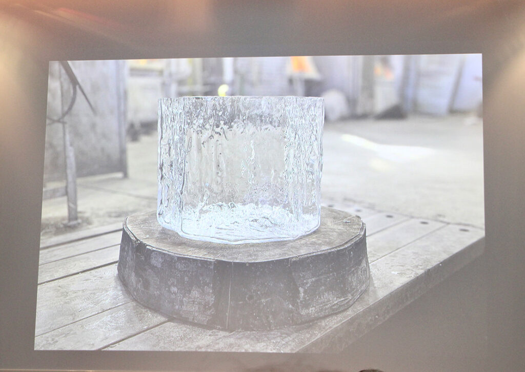ガラスと木型のあいだに生まれる「空(くう)」の概念とともに、大地・水・風・火という自然の四元素が織り込まれ、ヴェネツィア潟の魂を宿した作品となった。
