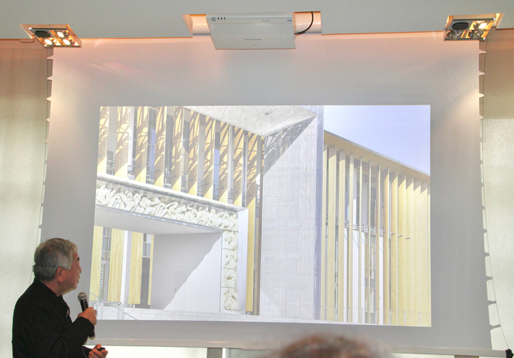 隈研吾氏の講演では、建築や素材、コンテクストの関係性、特に日本のデザインとヨーロッパ文化の対話に、焦点が当てられた。