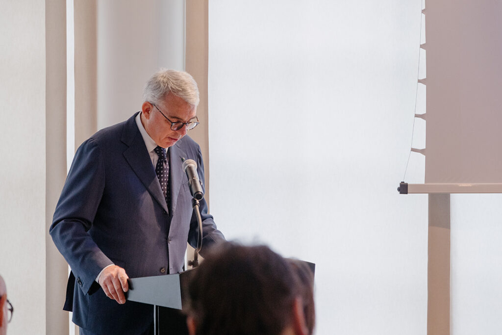 「このイベントは、IDJとの連携を記念するものです。イタリアの建築家とデザイナーに特化した協会の設立は、単なる専門家ネットワークの拡大にとどまらず、イタリアのデザインの根底にある価値観、すなわち伝統や機能性、創造性、そして美しさへの深い関心の高まりを反映しています」と話す、ジャンルイジ・ベネデッティ前駐日イタリア大使。