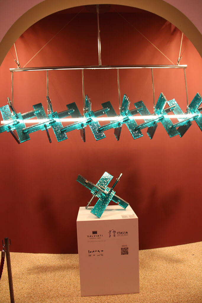 同じく万博で披露されたのが、サルヴィアーティ社によるムラーノグラスを用いたシャンデリア「dieXe(ディエクセ)」。ヴェネツィアのサンマルコ広場でも展示された。