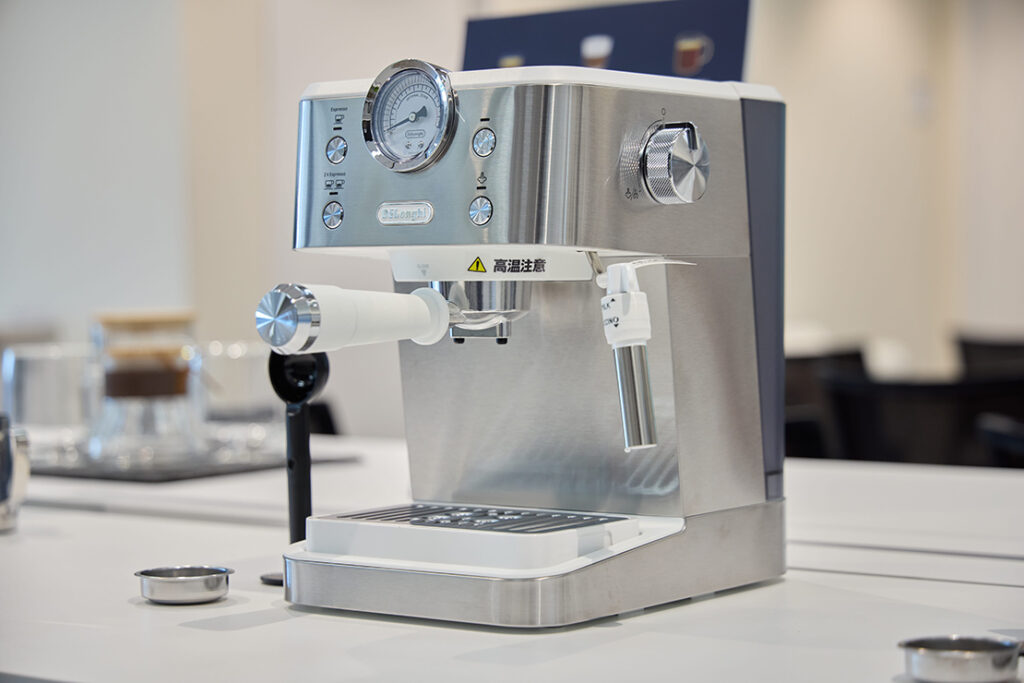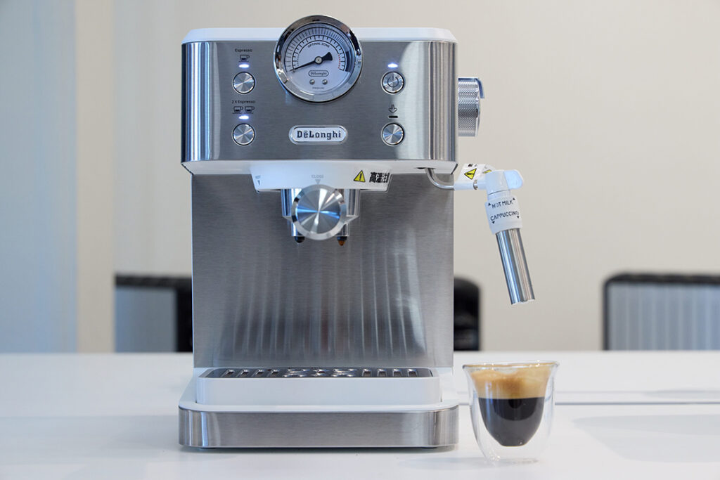 圧力計があることで、挽き具合やタンピングの違いがひと目で分かり、抽出の上達にもつながると好評。美しいクレマはもちろん、ミルクフォームも簡単に作れるので、エスプレッソからカプチーノ、カフェラテまで幅広く楽しめる。