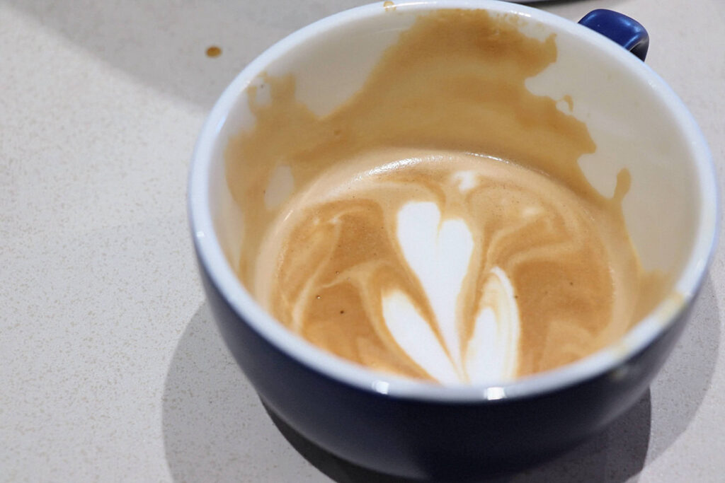 デロンギのラテアートは、ミルクフォームのきめ細かさが段違い。口をつけても絵柄が崩れず、そのまま残るほどの美しい仕上がりだった。