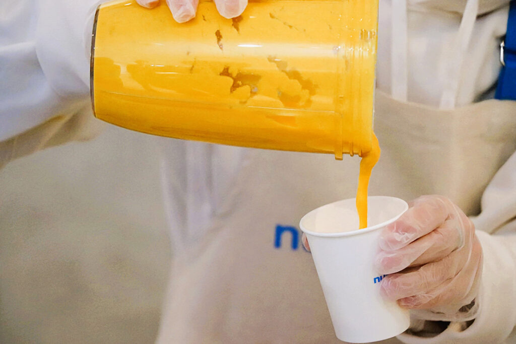 ボタンを押した瞬間、ブレードが回り出し、素材が一気に混ざり合う。色も香りも温度も、ひとつの飲み物へとまとまっていく。その様子だけで、もうおいしさが伝わってくる。