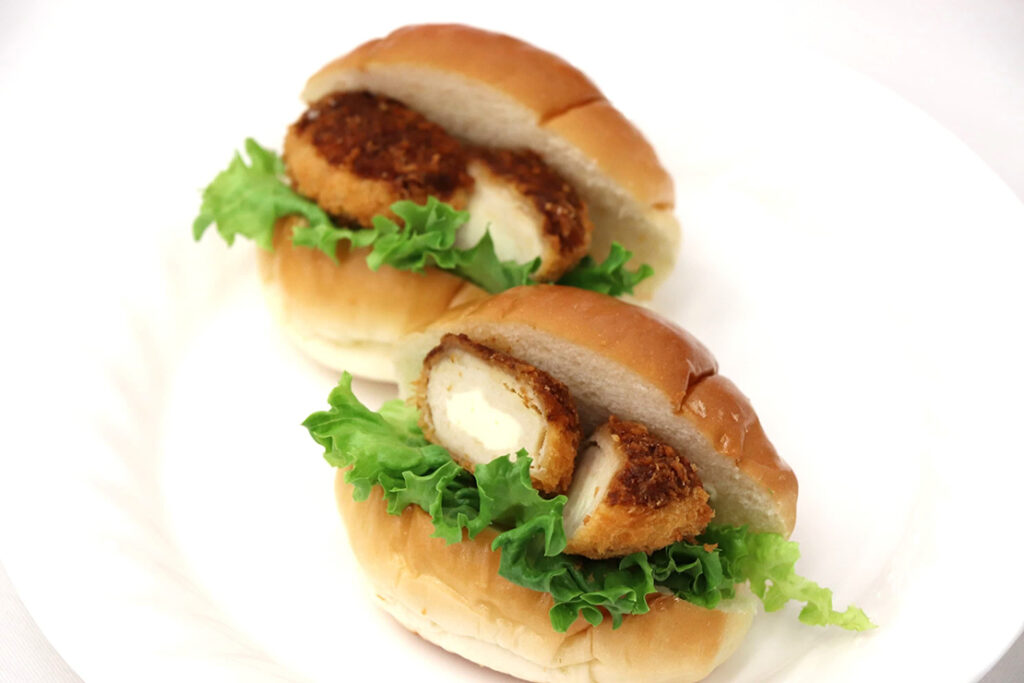 とろりとした食感が特長の濃厚チーズソース※を、豚・牛の合挽き肉で包み込んでいる。ゴロっとした肉の食感とチーズソースのコクが相性抜群で、ごはんのおかずにはもちろん、パンに挟んでも美味しい。