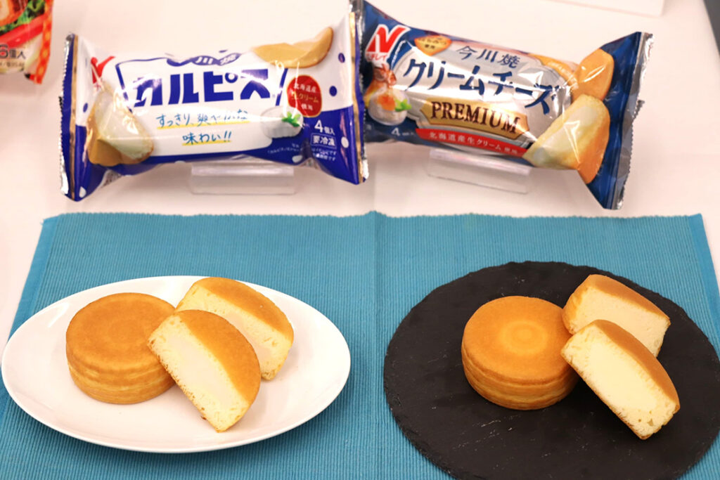 ニチレイフーズのスナック看板商品・今川焼と、アサヒ飲料「カルピス®」がコラボした特別な今川焼。生地とクリームの両方にカルピス®を使用し、甘ずっぱく爽やかな味わいが楽しめる。冷やしてもしっとり、温めればとろり。どちらでも美味しいのが魅力。