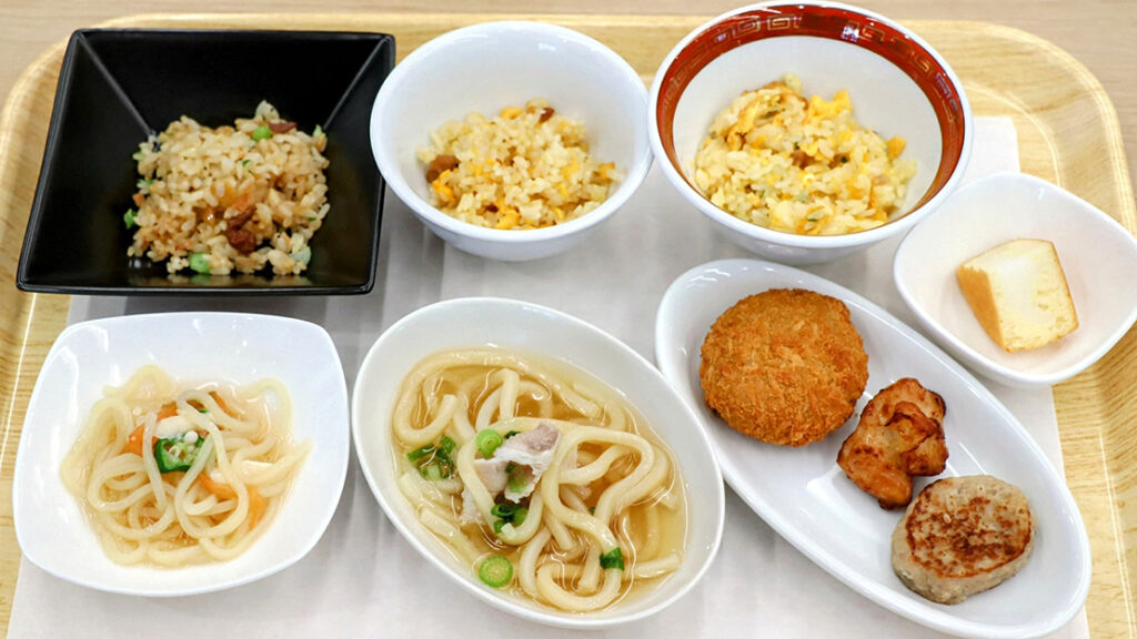 パラパラ炒飯に、冷えた麺が本格的な冷やし豚しゃぶうどん、肉汁あふれるミニハンバーグ、そして毎回度肝を抜かれる今川焼。