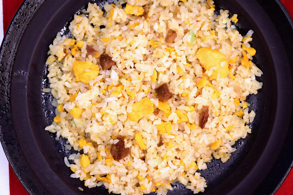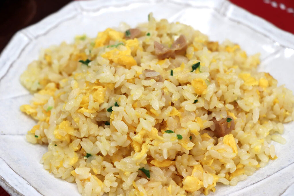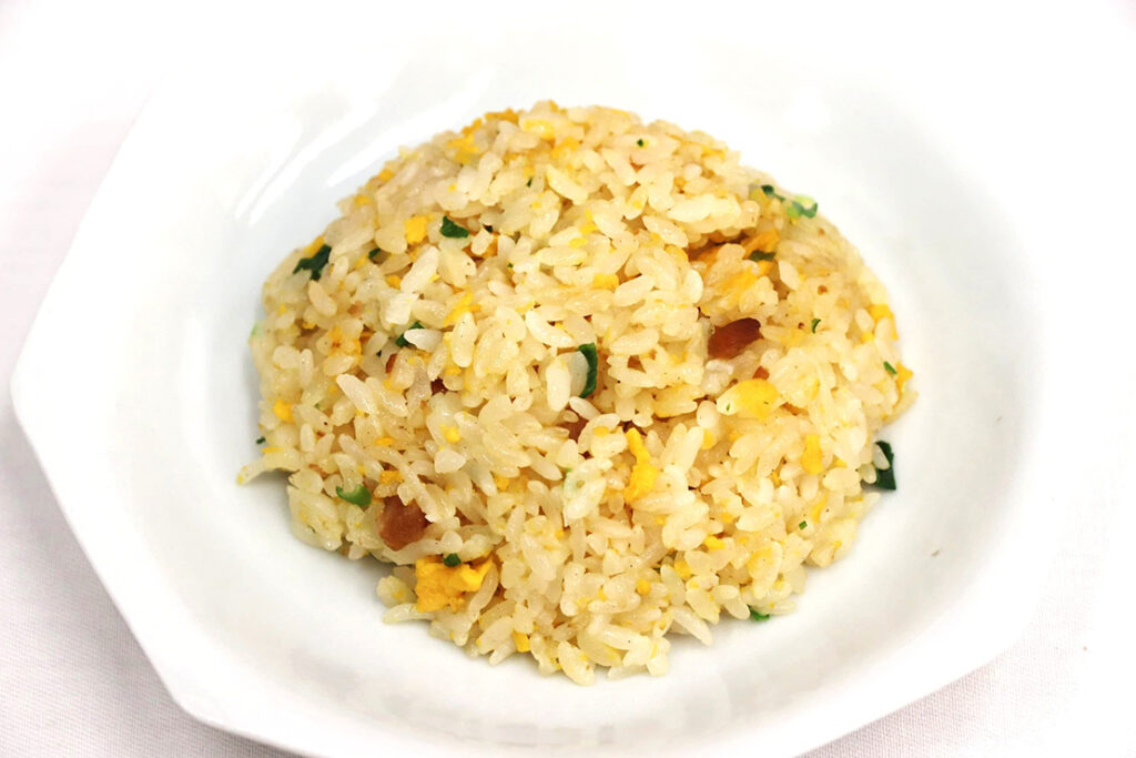 自宅で卵を加えて仕上げるタイプの炒飯で、独自の三段階炒め製法(前述)を採用。フライパンでサッと炒めるだけで、驚くほどパラッとした食感に仕上がる。自家製香味油と焼豚、そしてラードのコクが重なり、家庭では出しにくい深い味わいを実現。もちろん、レンジ調理でもしっかり美味しい。