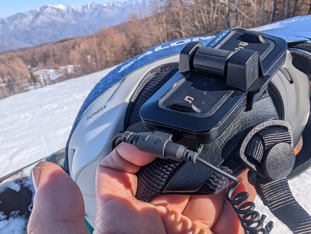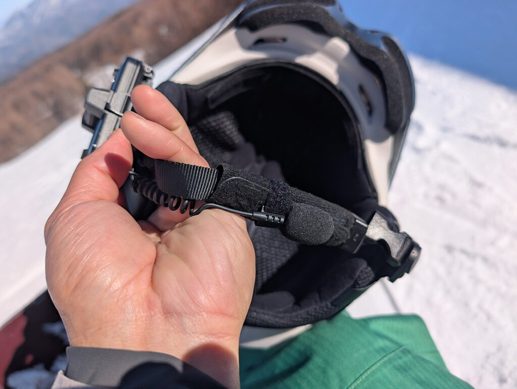 JBLが監修した大径40mmスピーカーが音質を担い、雪山で滑っている時の風切り音や滑走音を拾うことなく、仲間の声が耳元に届く。1人で滑るときは、スマートフォンとペアリングをすれば、電話の通話を受けることも、YouTubeミュージックやSpotifyを再生すれば音楽を流すことも可能。また、時にライディング技術チェックのためにスマートフォンでYoutubeなどを開いても、ヘルメットを外すことなく確認できるのも案外いい。