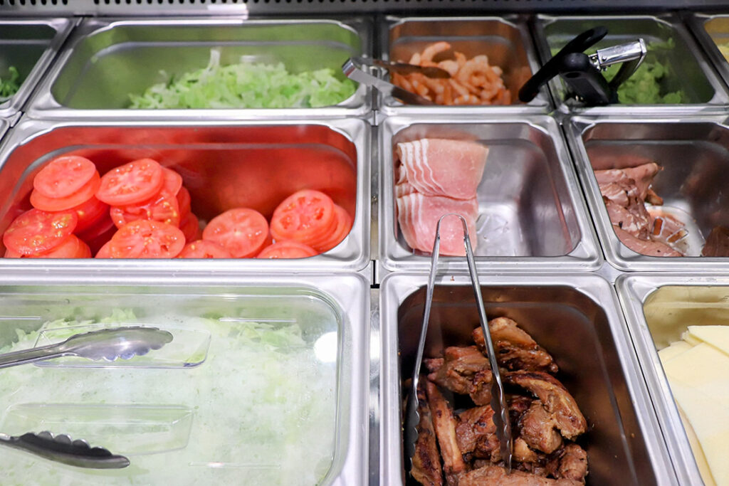 セルフオーダーシステムは、サンドをカスタマイズしたいときも操作が簡単だ。デジタル化が進んだ今でも、ショーケースには彩り豊かなフレッシュベジタブルがずらりと並んでいる。操作が苦手な人は、これまで通りスタッフに直接オーダーすることも可能だ。