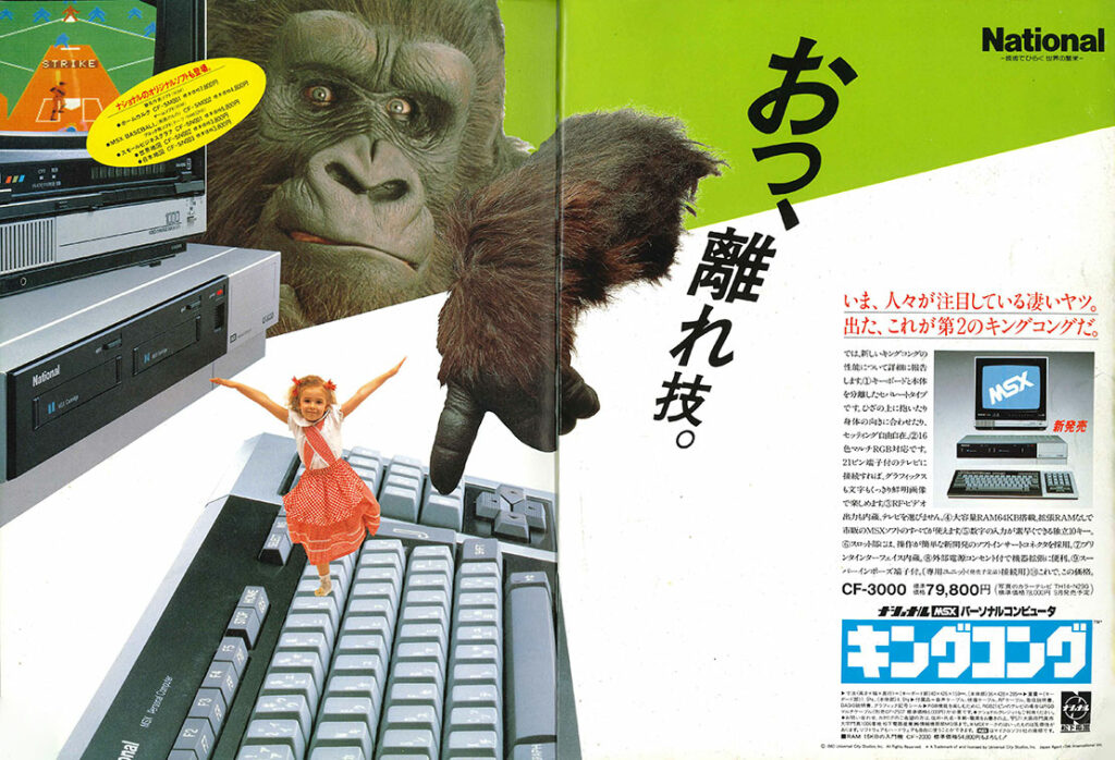 表紙を開いてひとつ目の広告は、National(現パナソニック)のパーソナルコンピュータ「キングコング」。グッとくるネーミングです。いったいどんな性能だったのか、コピーを引用しときます。