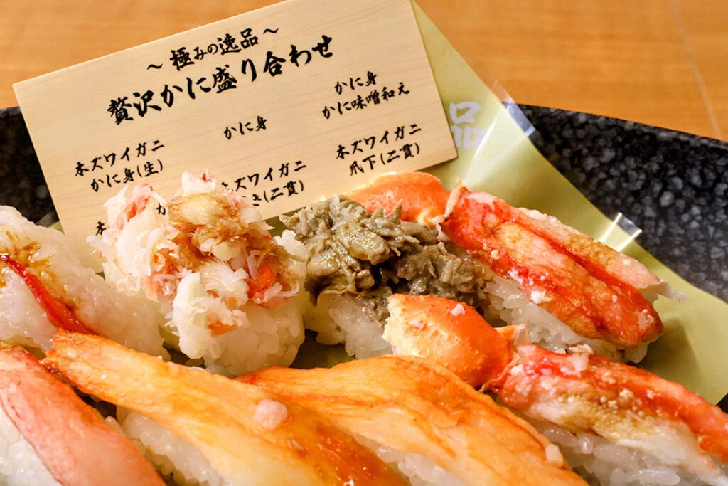 一貫からでも味わえる「特大生ズワイガニ」「本ズワイガニ大」