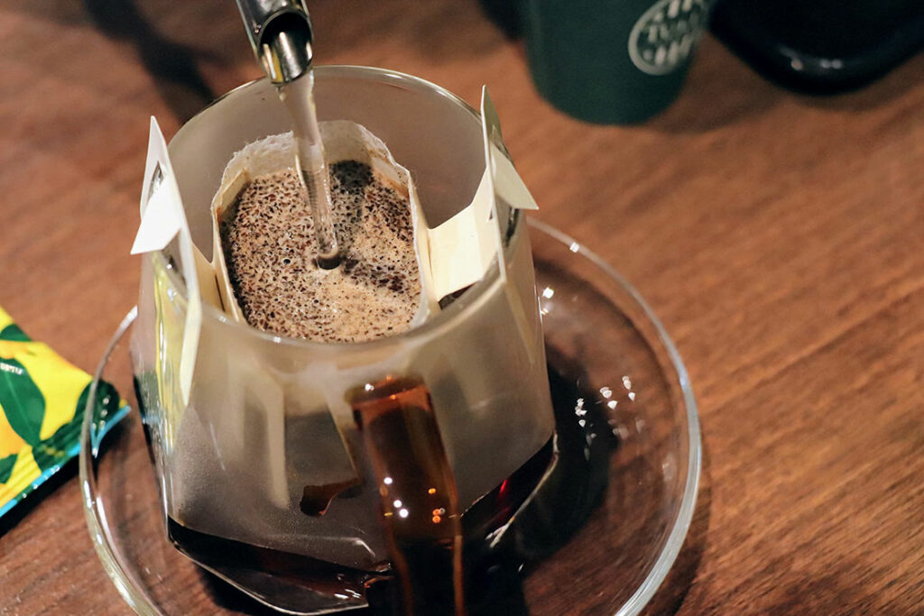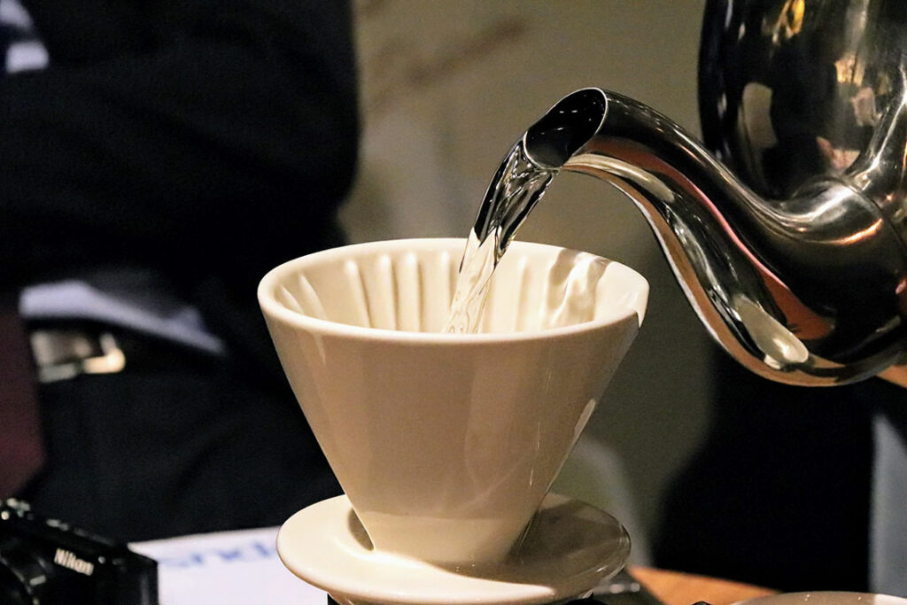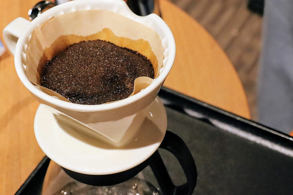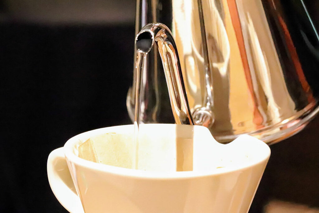 淹れ立てのコーヒーをテイスティング