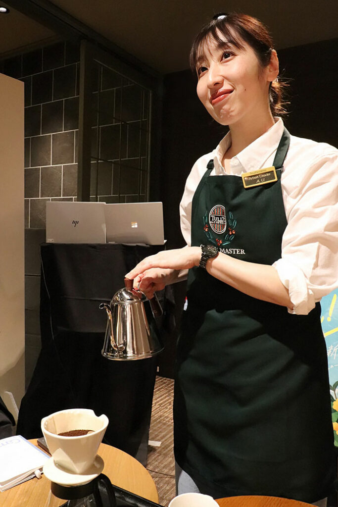 タリーズでは、2006年から年間5,000回に及ぶコーヒースクールを実施店舗にて開催している。講師を務めるのは、社内資格を取得した「コーヒーマスター」。コーヒーの楽しみ方から淹れ方まで、基礎から丁寧に教えてくれる存在だ。このコーヒーマスターは、タリーズ全スタッフの中でも約50名しかいない希少な存在で、緑のエプロンを着用できるのは、厳しい試験を突破した証でもある。