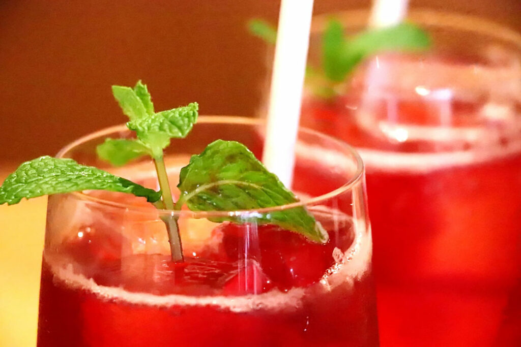 「ハイビスカス・スプリッツ(ハイビスカス、ローズヒップティー、ライム、ソーダ)」