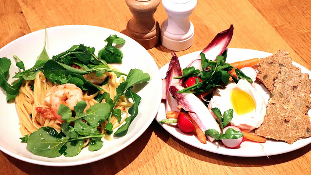 海老のプリプリ感、ガーリックとチリの香りをまとわせてソテー、リングイネのもちもち感との対比が絶妙な一皿。 重くないのに満足感がある、オイルベースなのにレモンとルッコラで “billsらしいヘルシー感” が楽しめるぞ。2300円。