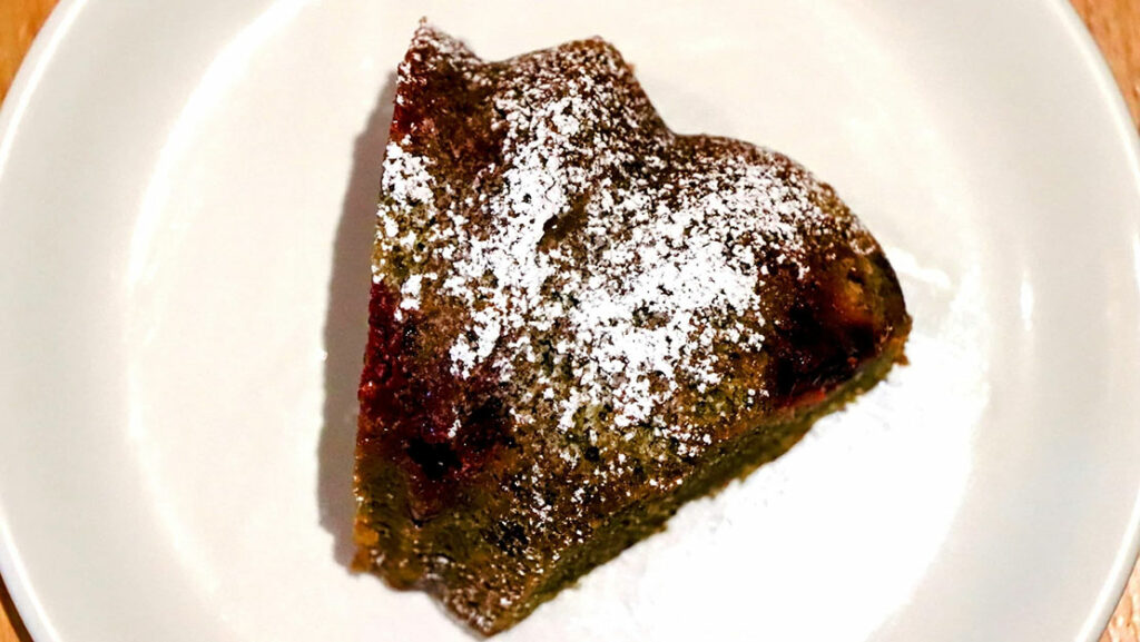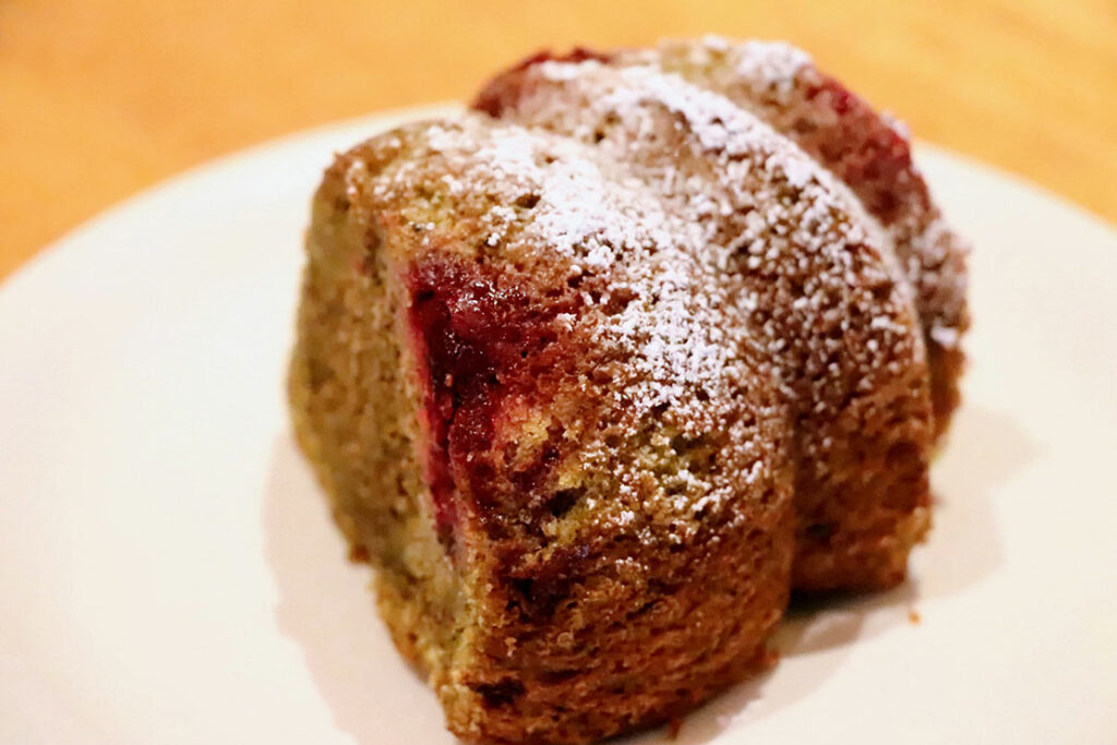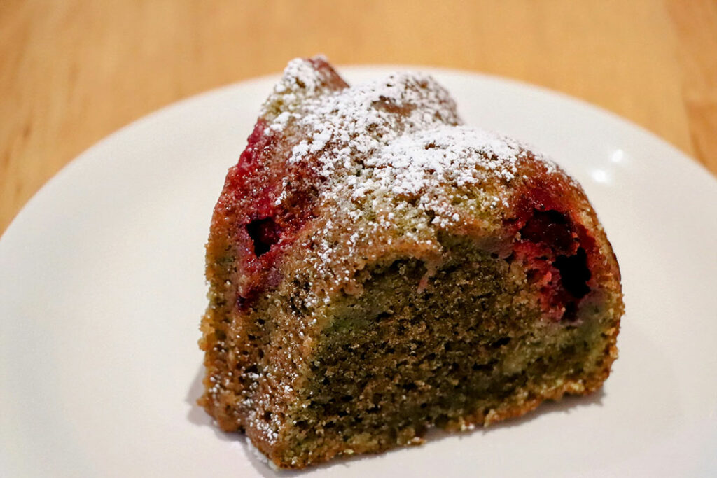 烏龍茶葉を細かく挽いて生地に練り込み、ほのかな渋みと香ばしさをまとわせた一品。チェリーの甘酸っぱさがアクセントになり、春の空気を思わせる軽やかさがある。しっとりとした食感は、コーヒーにも紅茶にもよく合うフレーバーだ。700円