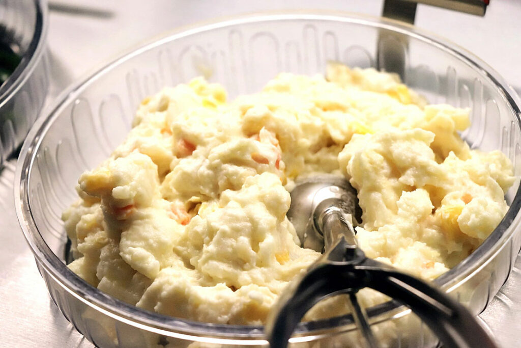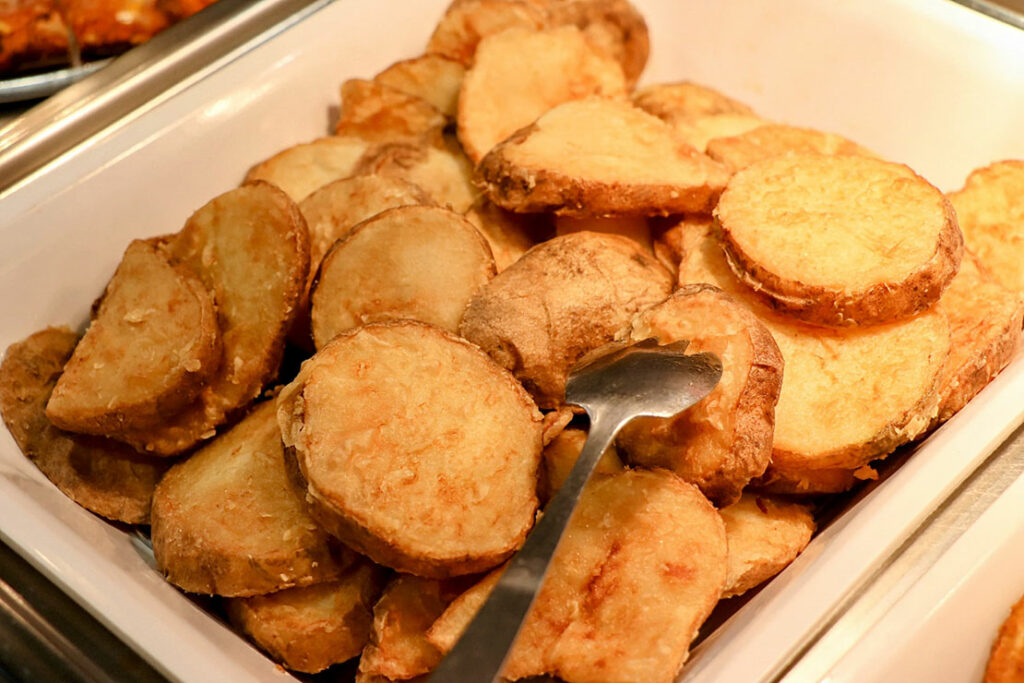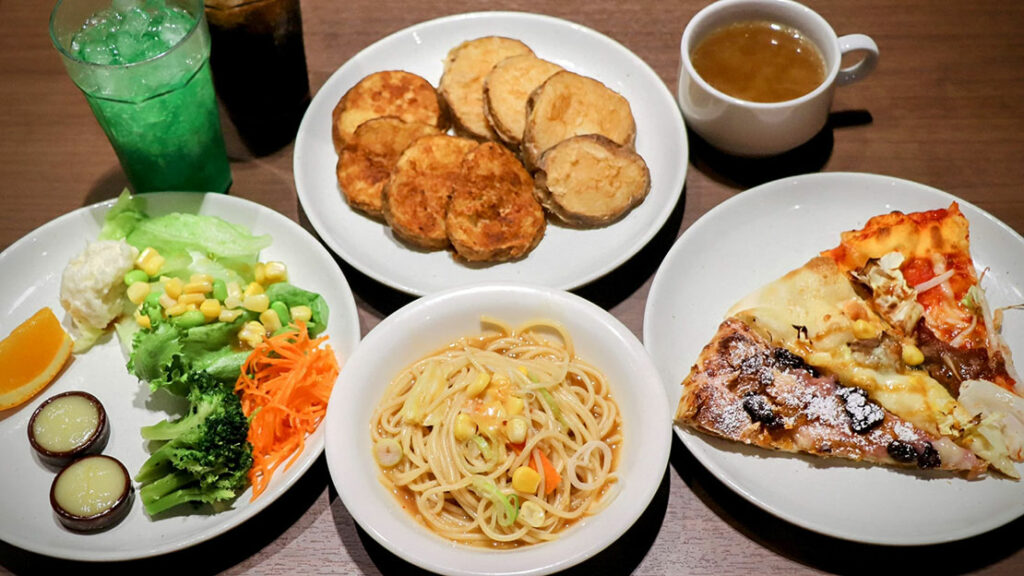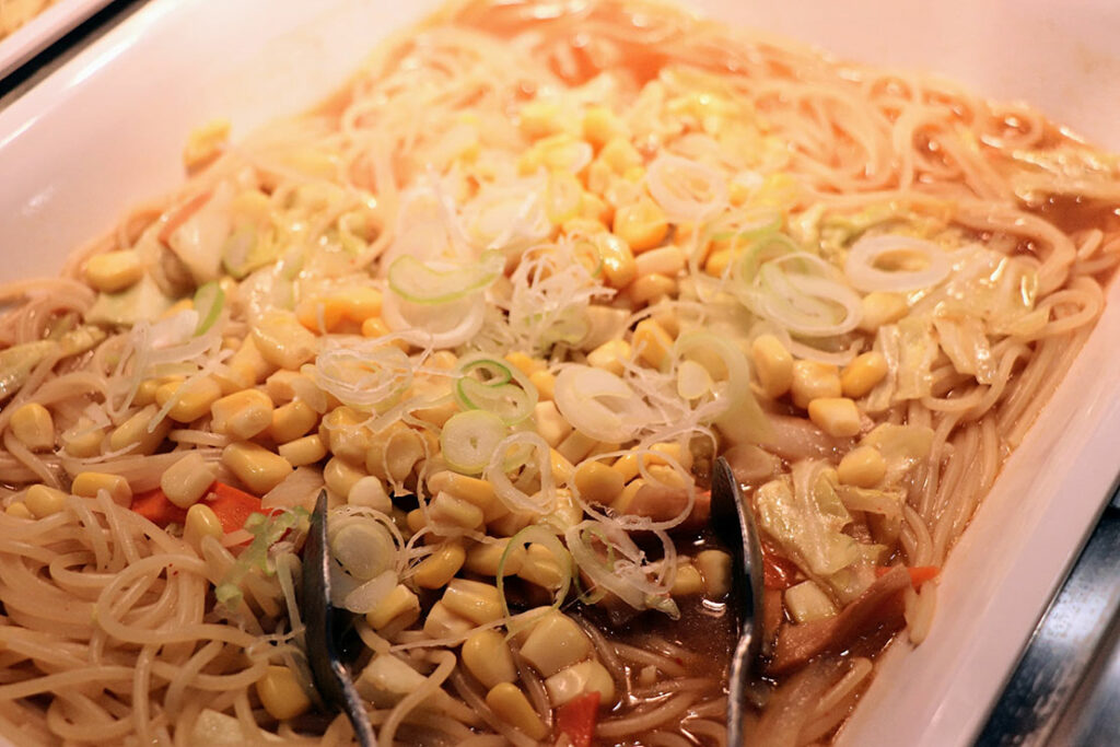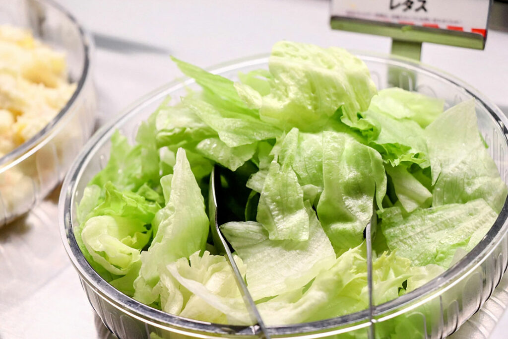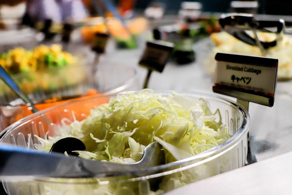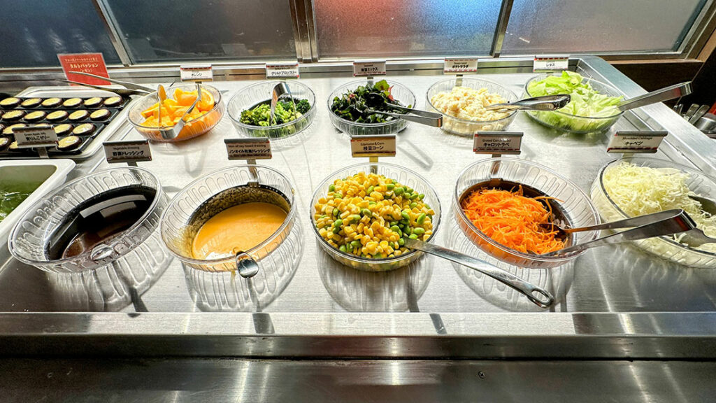 サラダバーに並ぶのは、レタスやコーン、海藻、ポテトサラダといった定番のラインナップ。特別な食材ではないのに、どれも “いま食べたい” と思わせる.理由は、補充のテンポが早く、常にみずみずしさが保たれていることにある。ピザの香ばしさやポテトの塩気が主役になるシェーキーズでは、この “軽さ” がちょうどいい。バイキングの中で、サラダがリズムを作ってくれるぞ。
