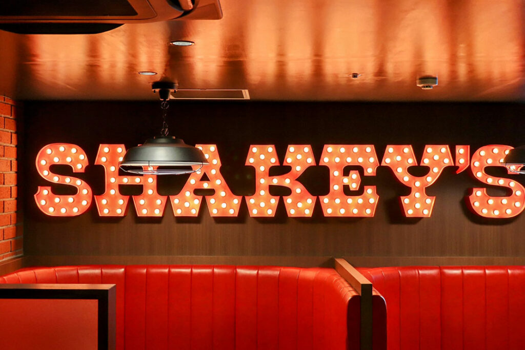 1954年、シェーキーズは米カリフォルニア州サクラメントで誕生したアメリカンピザパーラーだ。クリスピーなアメリカンピザ生地を特徴とし、来店したお客様と “喜びと歓迎の握手(シェイクハンド)” を交わすことから、その名が「シェーキーズ」と名付けられたという。