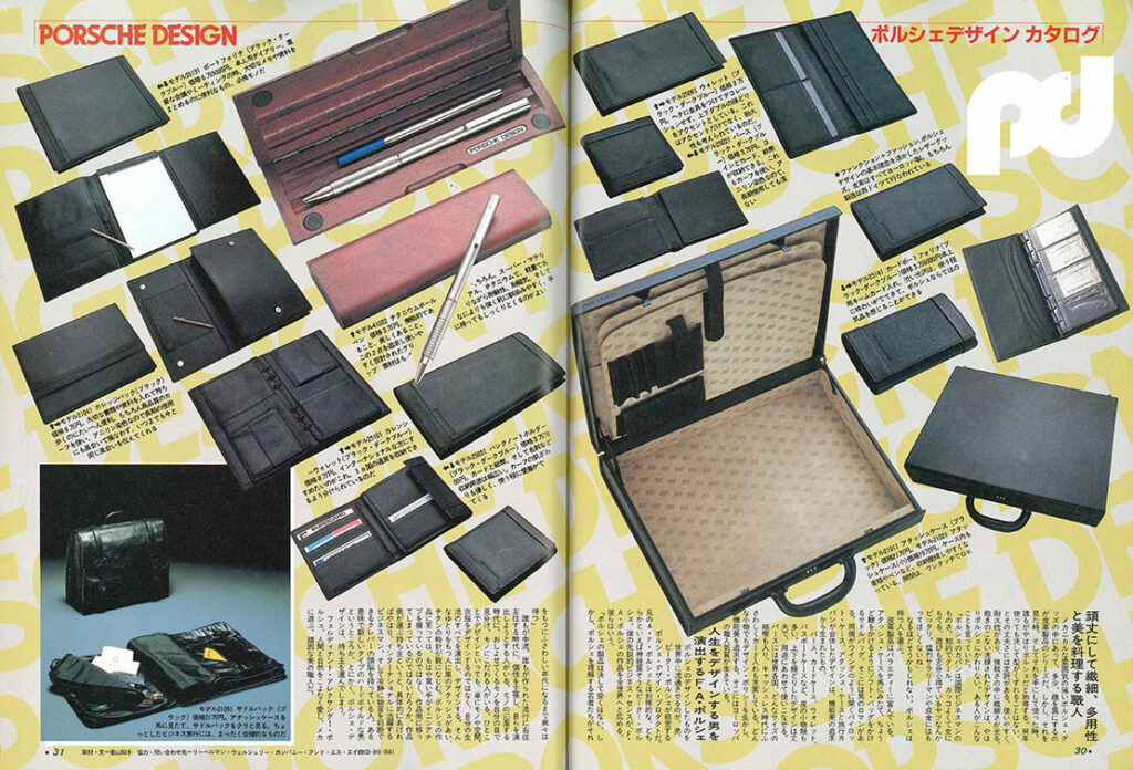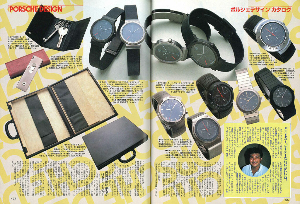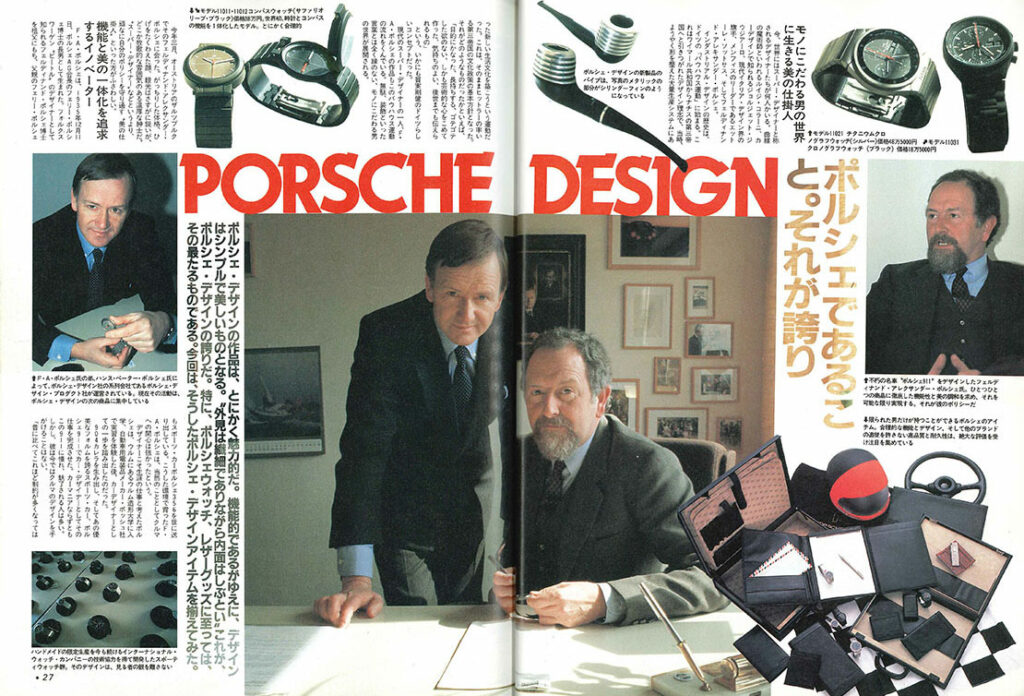 カラー6ページ構成の「PORSCHE DESIGN ポルシェであること。それが誇り」では、当時、世界でスーパー・デザイナーと呼ばれたうちのひとり、フェルディナント・アレクサンダー・ポルシェさん(ポルシェ・911のデザインにも携わった人)が創業したポルシェデザインのアイテムを紹介してます。ちなみに、当時、他のスーパー・デザイナーは、ルイジ・コラーニさん、ジョルジェット・ジウジアーロさん、エットレ・ソットサスさんなどがいらっしゃいました。