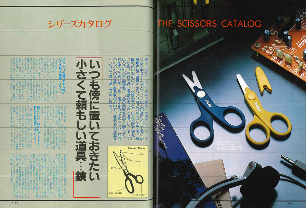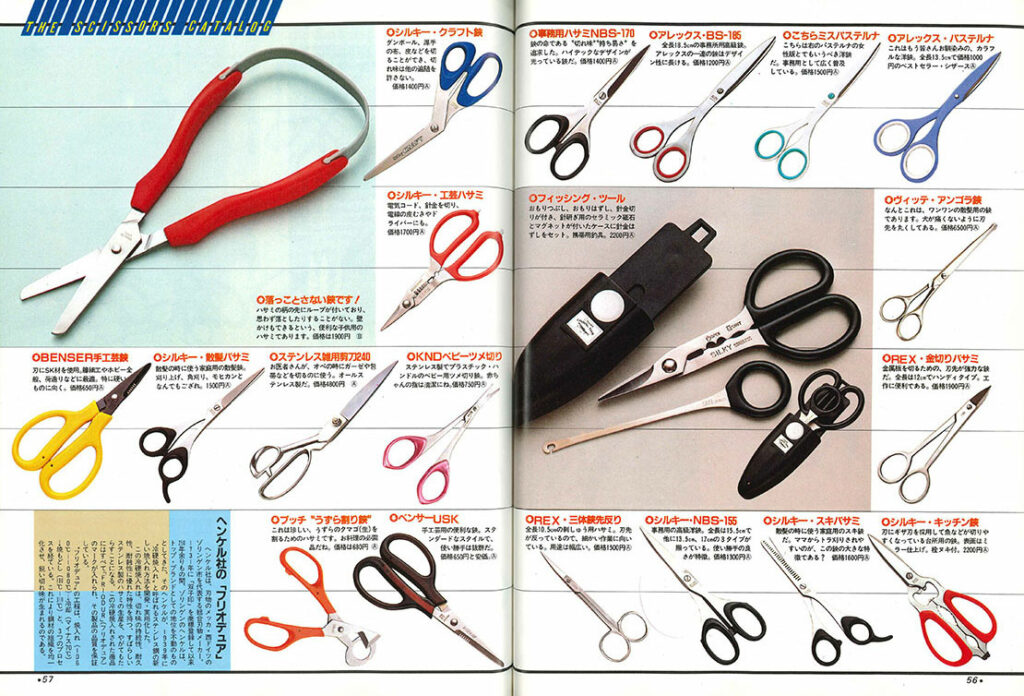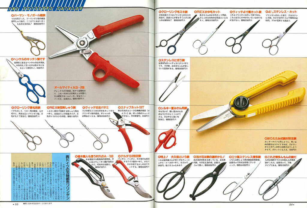 カラー8ページ構成の「シザーズカタログ いつも傍に置いておきたい小さくて頼もしい道具•••鋏」。事務用、裁縫用、散髪用、グルーミング用、医療用、工芸用、植木用、キッチン用などなど、ずら〜り並べて紹介してます。