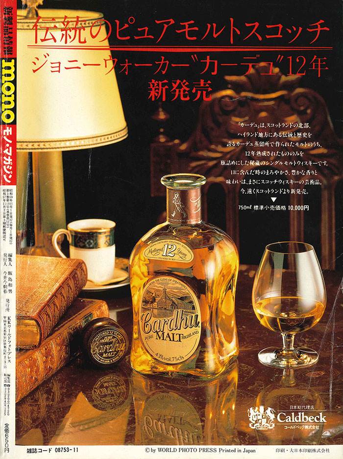 表4の広告は「伝統のピュアモルトスコッチ ジョニーウォーカー “カーデュ” 12年 新発売」です。広告としては新発売なんですが、当然当時の新発売であって、しかも「日本総代理店 Caldbeck」とあります。この社名がラベルに記載されたジョニーウォーカーは、1970〜1980年代にかけて日本で流通していた、今となっては大変希少なオールドボトル(古酒)ってことらしいんですよ。飲んでみたいですね。
