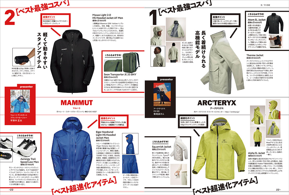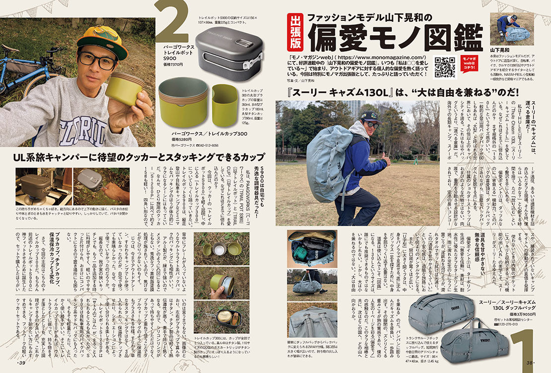 最新版 あのアウトドアブランド ベスト最強コスパ+ベスト超進化アイテム+【モノマガが展示会で見つけた気になるギア&これから売れるモノ】。各人気ブランドが推す「最強コスパ」&「超進化」アイテムが大集合! 知ってトクするめっけモノ情報も満載。さらにニュース、対談、読み物記事も充実した54ページの大特集!