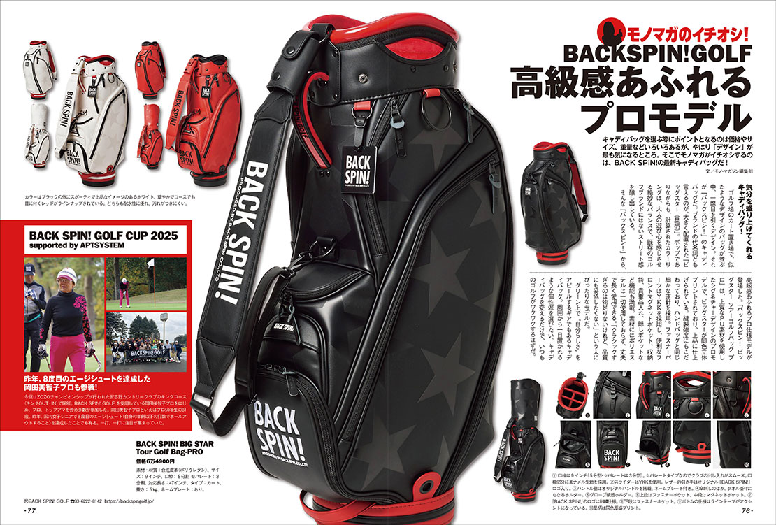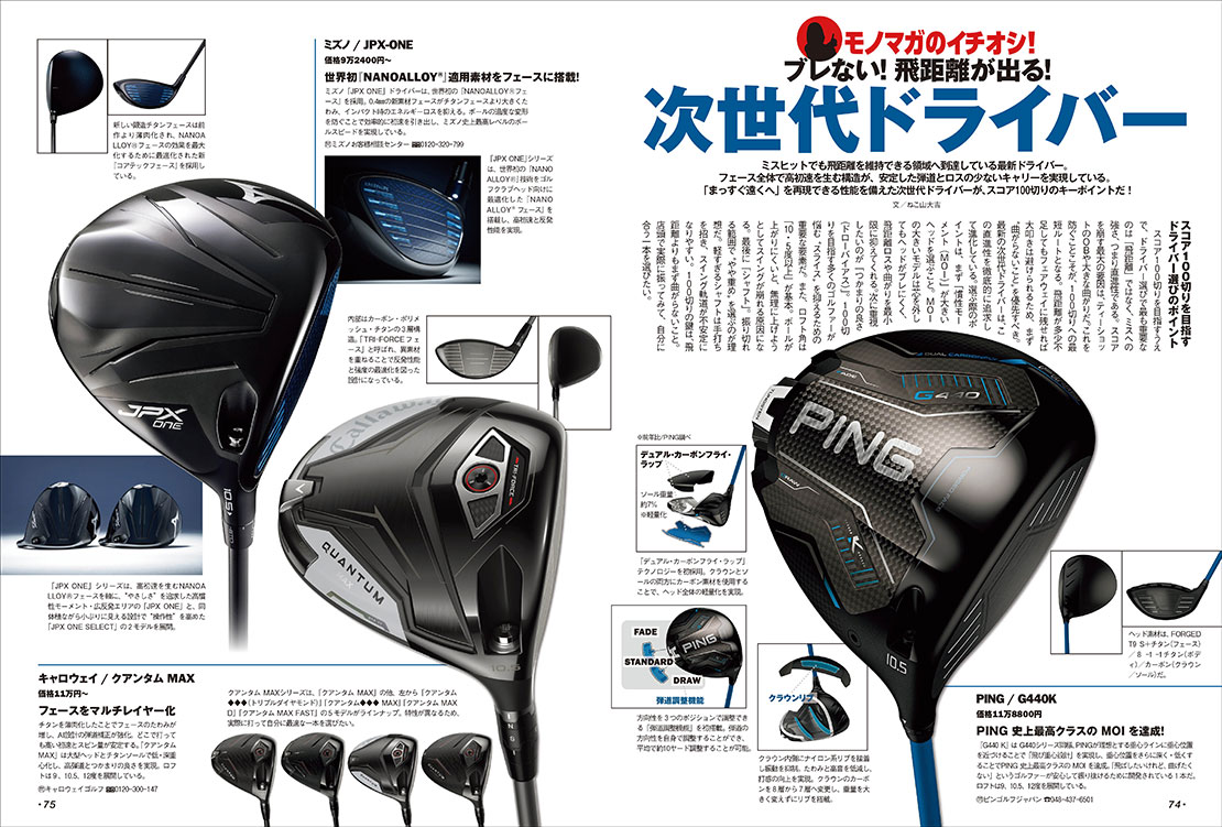 ここ数年、人気が再燃しているゴルフ。その背景にはゴルフ人口のすそ野の広がり、アパレルのアップ・デート、ゴルフ用具の進化などがあげられる。そこでモノ・マガジンでは、ゴルフギアやアイテムなどモノを中心に集めてみた。こだわりのクラブやキャディバッグ、ウエア、シューズなど最新ギアの情報をたっぷりと紹介する。