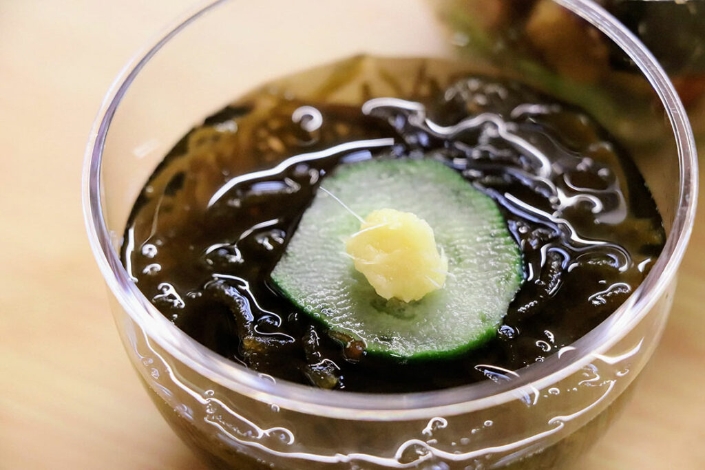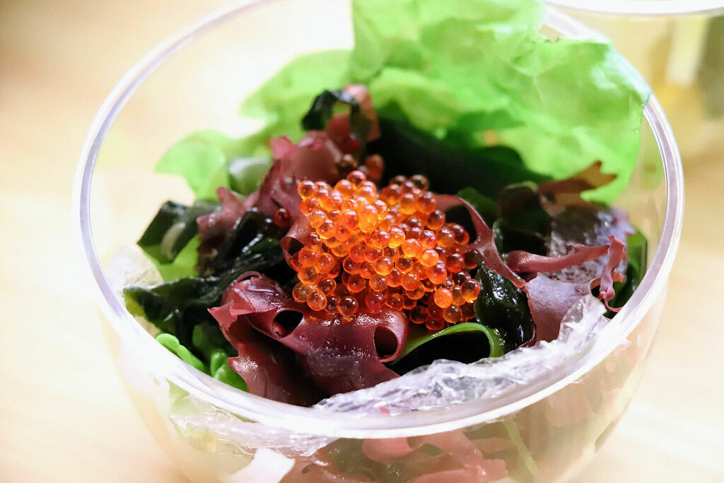 とびこ・海藻・オニオンで多彩な食感。アルギン酸 × ヨウ素でスマートな食生活をサポート。とさかのりがいい仕事をしている一皿。