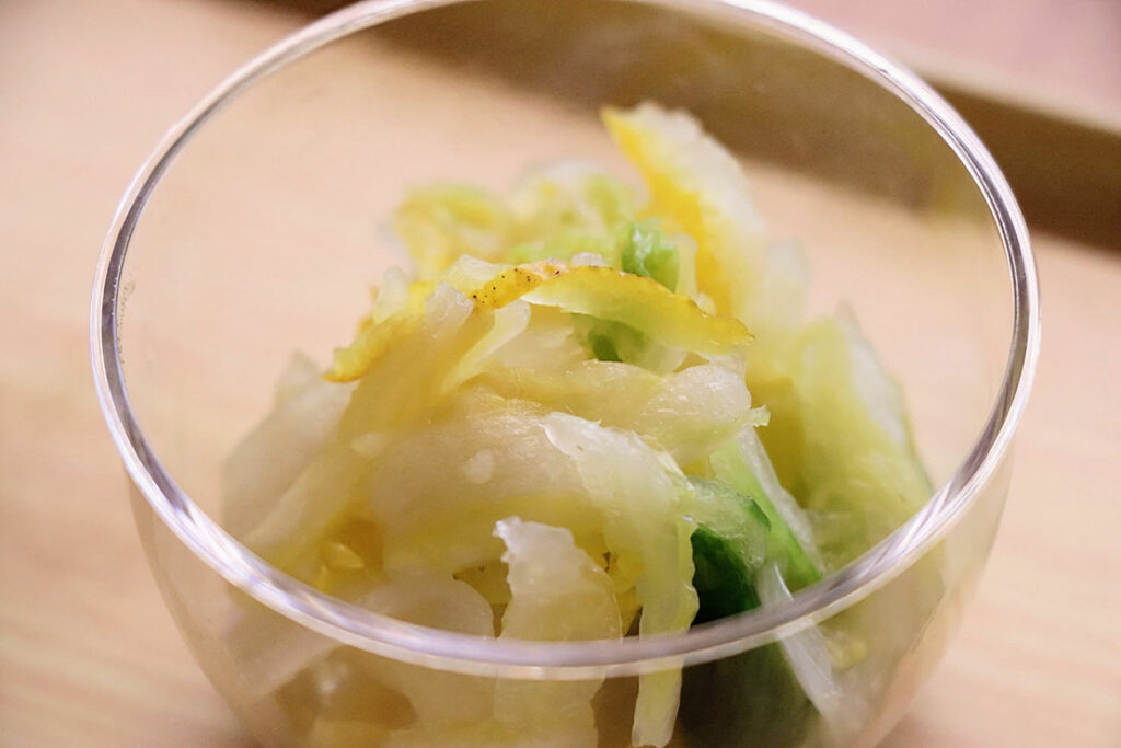 爽やかなゆず香るシャキシャキ白菜の漬物。クエン酸 × 食物繊維で毎日のスッキリをサポート。お寿司によし、お酒のあてによしのヘルシー漬物。