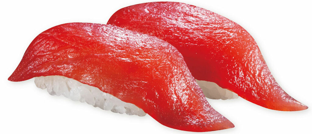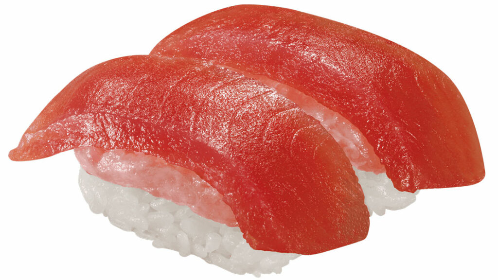 販売期間:4月3日(金)~5月14日(木) 江戸川コナンが付けている赤色の蝶ネクタイをイメージした商品。熟成まぐろの下にねぎまぐろが隠れていることから、“トリックまぐろ” と名付けている。このトリック寿司。ありそうでなかったお寿司に仕上がってる。